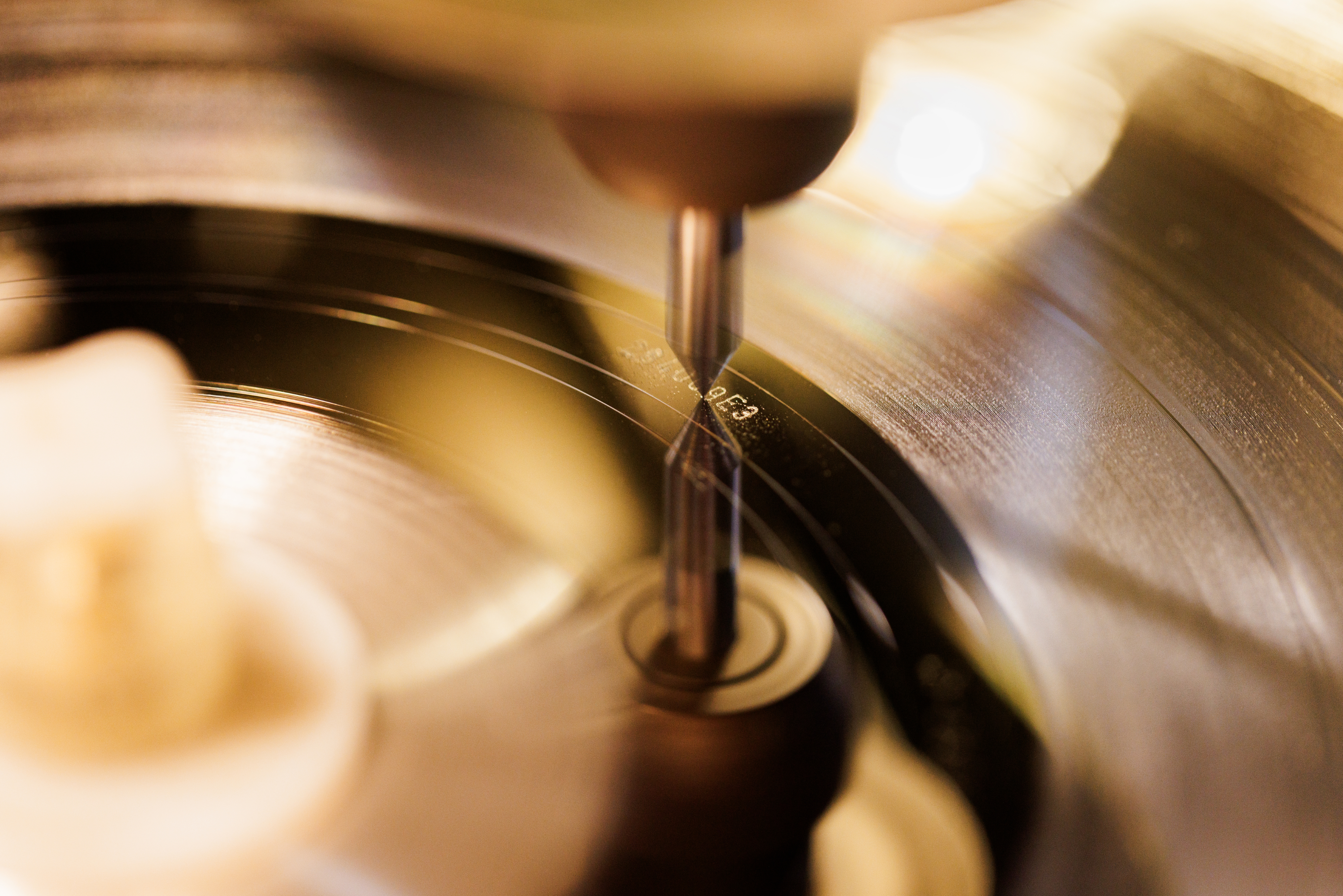 Immerhin können wir den Maestros über die Schulter schauen, als sie einen Track mit dem Stichel in das Metall-Master schneiden. Bei diesem „Direct Metal Mastering“ (DMM) wird die Musik in eine mit Kupfer beschichtete Metallscheibe geschnitten. Diese modernere Alternative zum Lack-Master hat viele Vorteile, da man sich direkt mehrere Herstellungsschritte sparen kann, wovon auch der Klang profitiert.