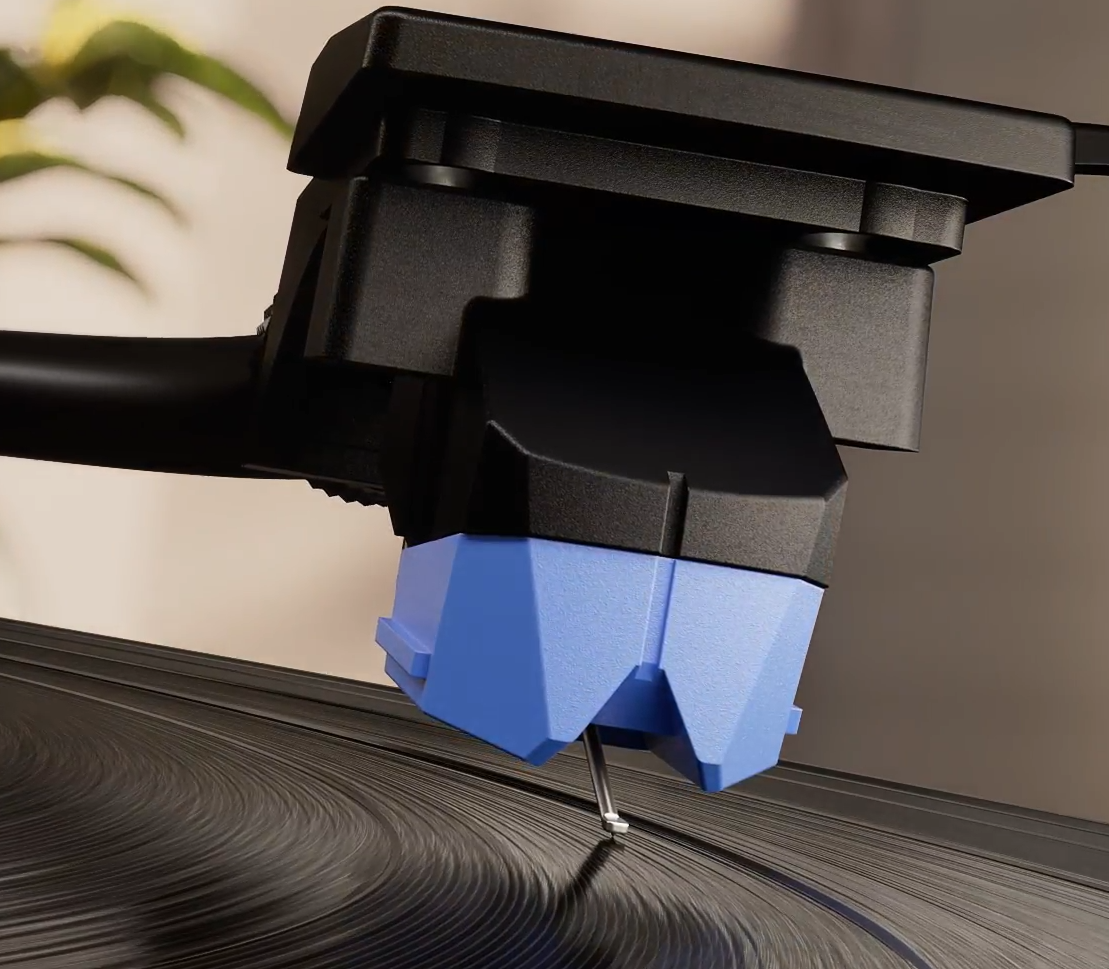Schauen wir uns dieses Tonabnehmer-System mal genauer an. Im Auslieferungszustand ist ein Audio-Technica AT-VM95C unter das Headshell geschraubt. Dieses System hat sich bereits an hunderten Plattenspielern bewährt und überzeugte auch am SL-40CBT. Der große Vorteil der VM-Serie ist jedoch, dass ihre Nadeln ganz leicht ausgetauscht werden können. Das macht nicht nur eine Reparatur schnell und günstig, sondern ermöglicht dir auch ein Klangupgrade in wenigen Minuten. Einfach die blaue Nadel abziehen und etwa die grüne des Audio-Technica AT-VM95E einsetzen. Fertig.
