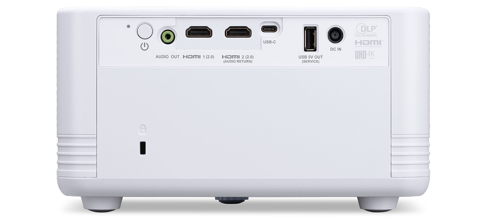 Laut Acer verfügt der neue PD1810 auch über einen speziellen Fußball-Modus. Für die leichtere Aufstellung hilft dir der Beamer mit Autofokus, Keystone-Korrektur und 4-Ecken-Anpassung. Es sind auch zwei Lautsprecher mit je 5 Watt integriert, die aber wohl eher eine Notlösung sind. Zum Glück erlaubt es dir der Port für HDMI ARC, den Ton auch an externe Anlagen weiterzuleiten. Wichtig noch zu erwähnen: Dieser Beamer löst nicht nativ mit 4K Ultra HD auf, sondern „erschummelt“ sich die hohe Auflösung per Pixel-Shifting.