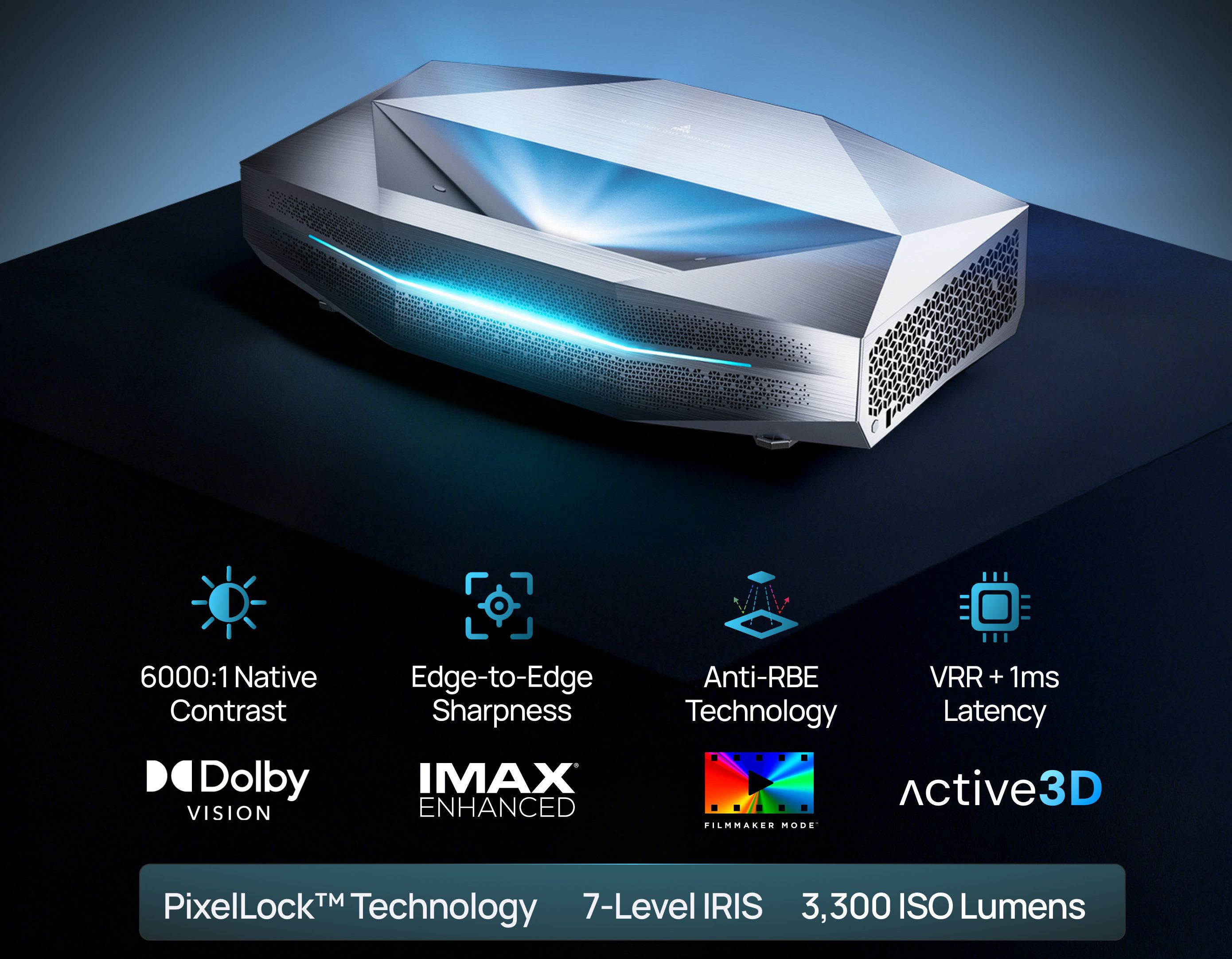 Freilich solltest du dich da nicht zu sehr einwickeln lassen, denn da AWOL Vision sich die unverbindlichen Preisempfehlungen sozusagen aus den Fingern saugt, kann man sich auch vermeintlich immense Rabatte zusammenrühren. Da bleibt abzuwarten, ob der Hersteller die Aetherion Pro und Max wirklich dauerhaft zur UVP anbieten wird. Jedenfalls erlauben es die Ultrakurzdistanzprojektoren, Diagonalen von bis zu 200 Zoll zu erzeugen. Obendrein unterstützen sie auch die 3D-Wiedergabe sowie HLG, HDR10 und Dolby Vision.