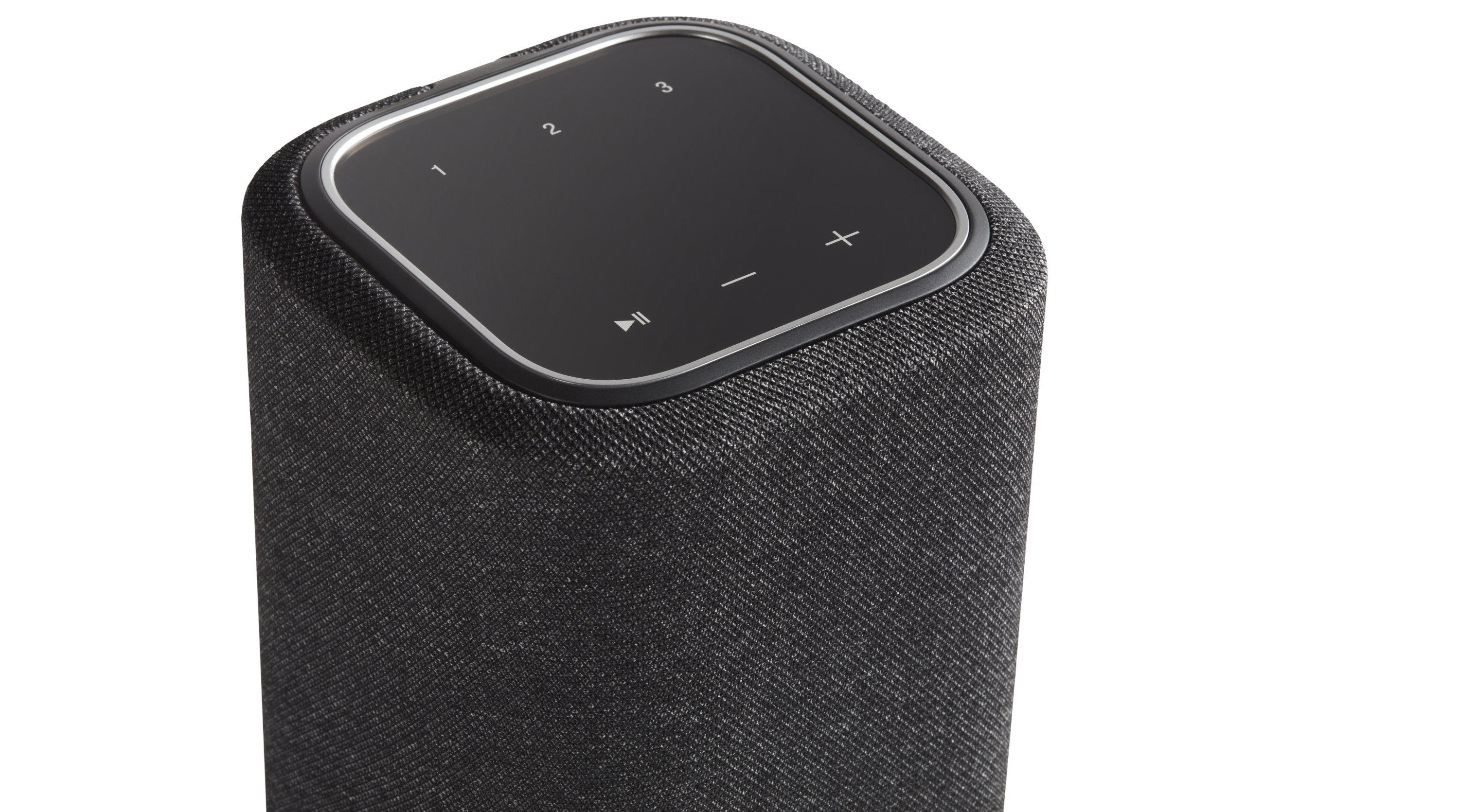 Der Denon Home 150 NV unterstützt laut Hersteller auch Hi-Res Audio. Er verfügt über Anschlüsse für 3,5 Millimeter Klinke und USB, kann aber freilich auch per Bluetooth kabellos zu Zuspielern verbunden werden. Dank Wi-Fi verbindet er sich selbstständig mit deinem Netzwerk. Dann kannst du über die HEOS-App ebenfalls Streaming-Inhalte starten. Am WLAN-Lautsprecher selbst sitzen Bedienfelder für die Lautstärke sowie Start und Pausierung der Wiedergabe.