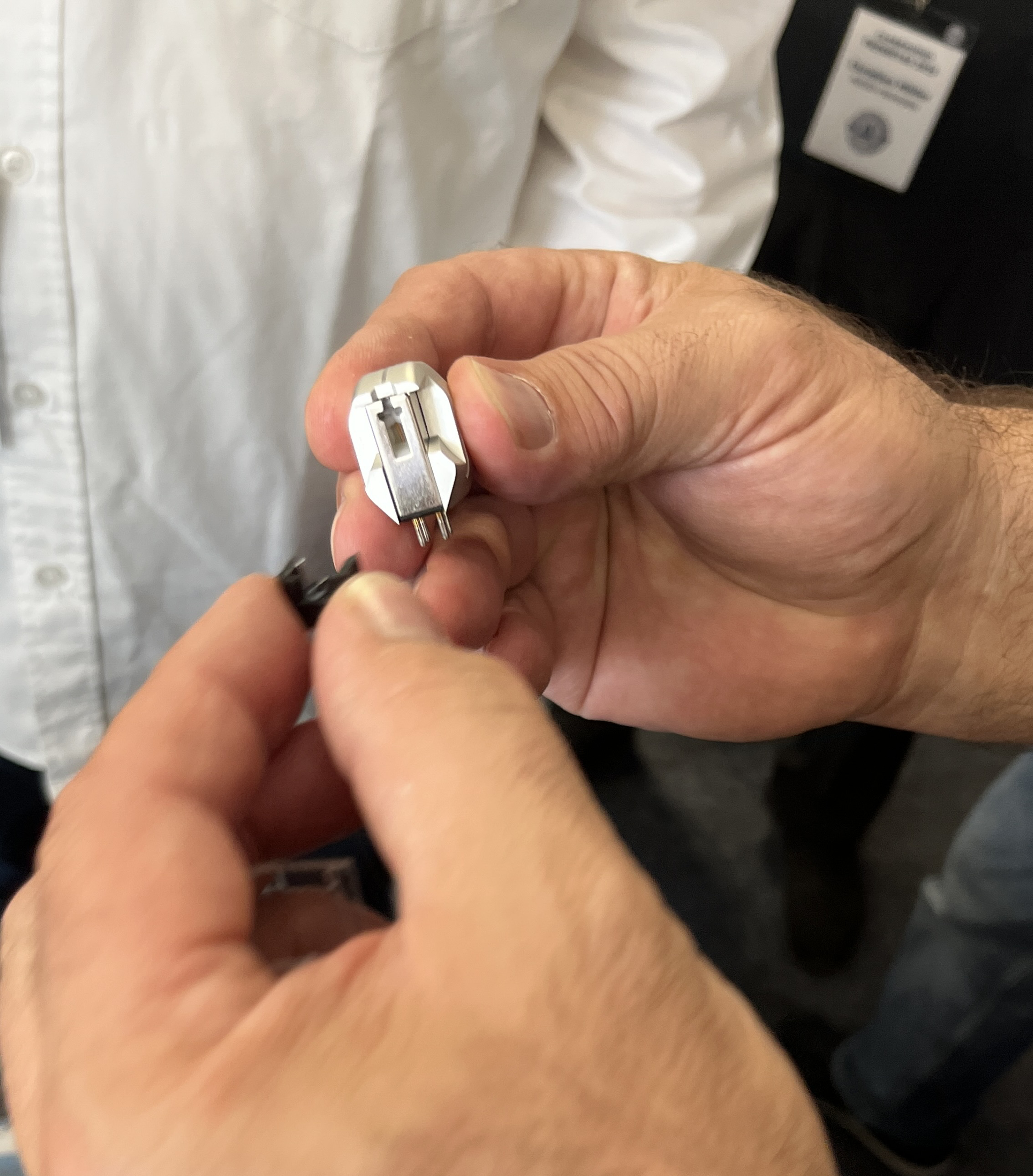 Das Gehäuse selbst fertigt eine auf Aluminium spezialisierte Fräserei, nicht weit vom Firmensitz in Erlangen. Im Werk wird es dann mit der Technik vermählt. Ein Novum für Clearaudio: Zum ersten Mal kannst du bei einem Tonabnehmer von Clearaudio die Nadel selbstständig wechseln. Der Nadeleinschub lässt sich kinderleicht aufstecken, wie Suchy selbst demonstrierte. Auch nach dem Einbau soll dies problemlos möglich sein.