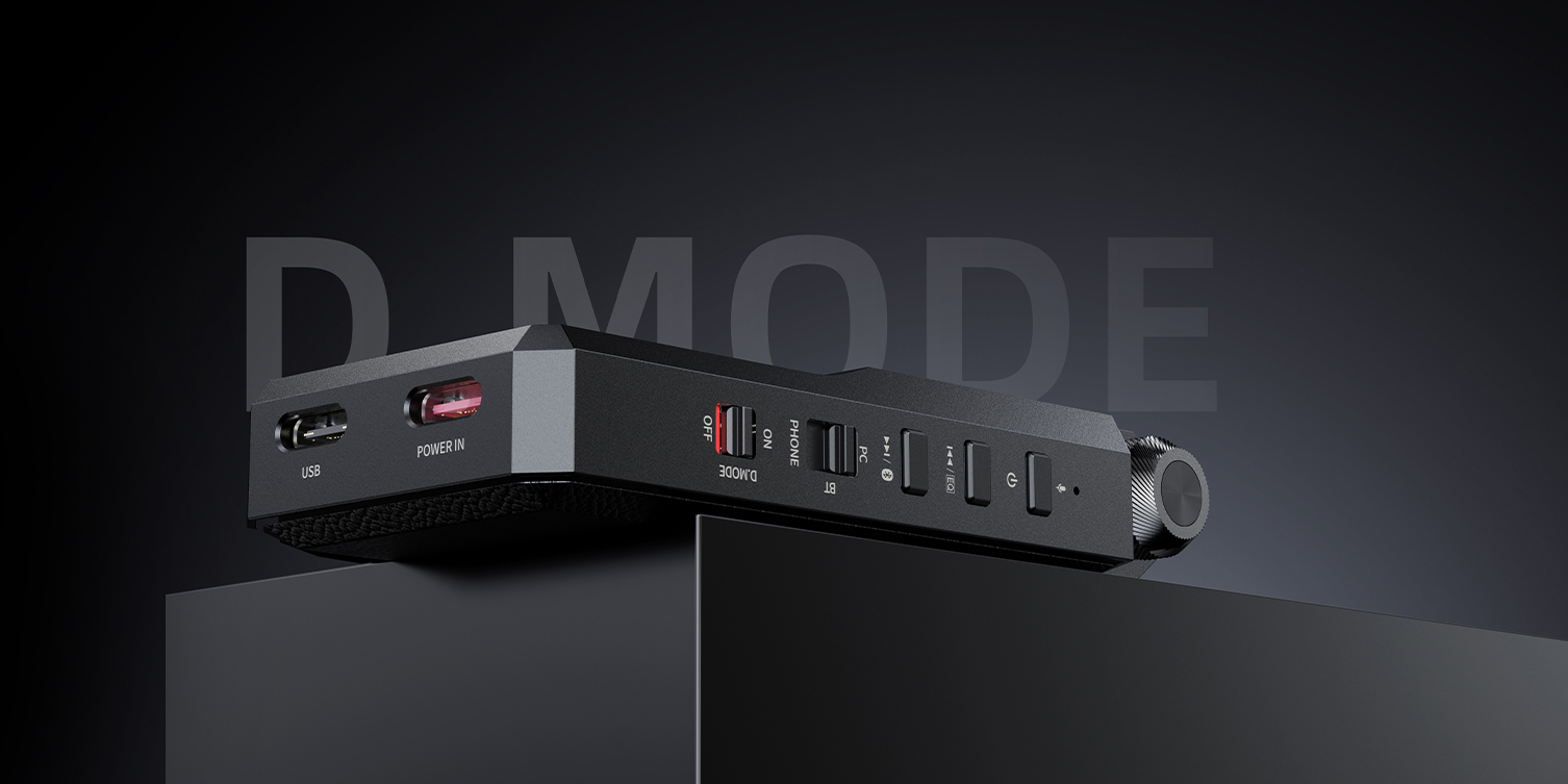 Ein Schalter an der Seite ermöglicht dir, zwischen drei Betriebsarten umzuschalten: Schaltest du auf „PC“ bezieht er seine gesamte Energie aus der Musikquelle. Über „BT“ nutzt er seinen eigenen Akku und über „Phone“ seinen Akku und den deines Handys. So soll sich dein Handy langsamer entladen.