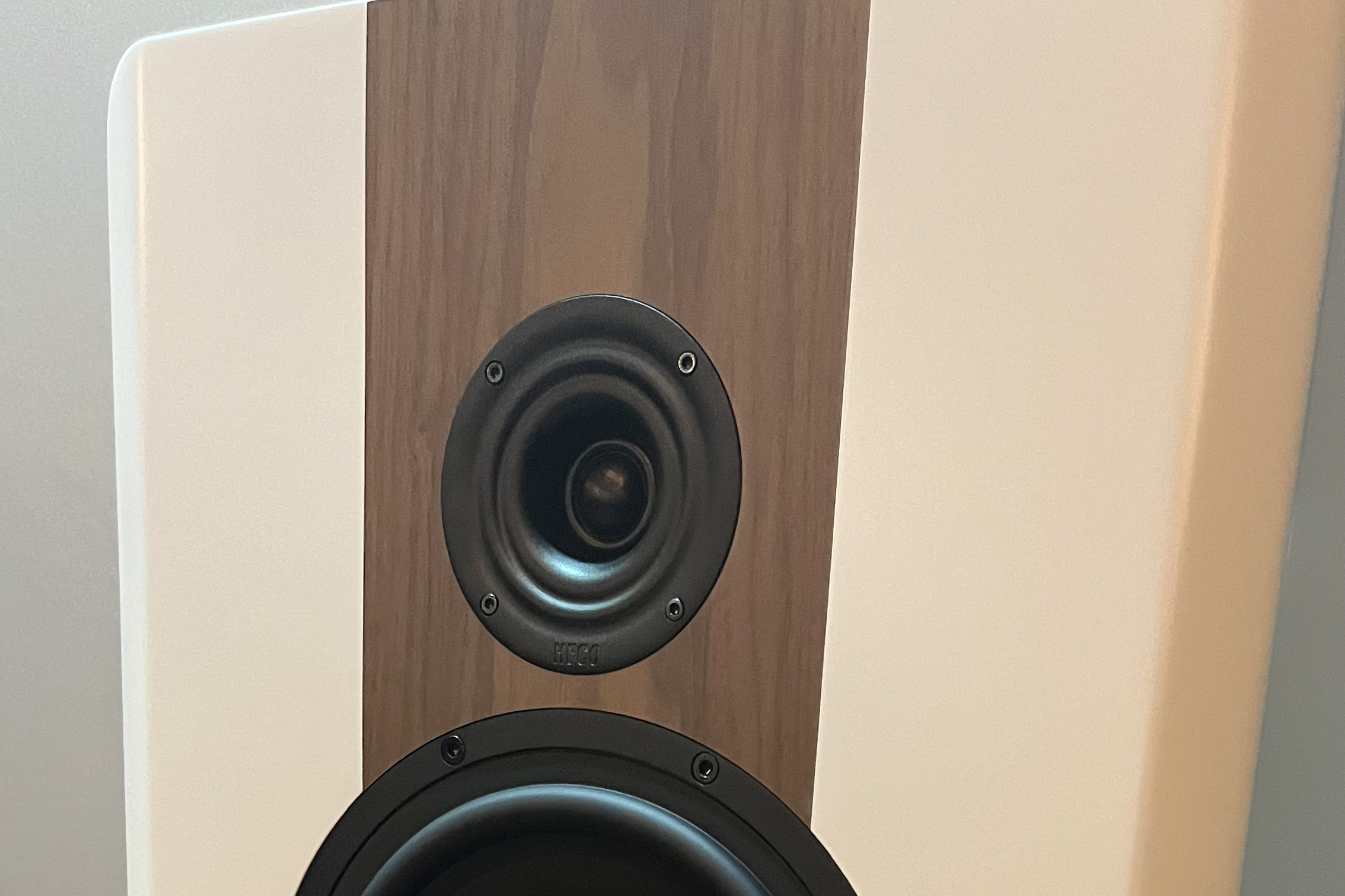 Trotz seiner Größe soll der Tieftöner verzerrungsfrei bis 2.150 Hertz spielen. Erst hier übernimmt dann die Hochtonkalotte mit 28 Millimetern Durchmesser. Diese sitzt in einem gewellten Wave Guide aus Aluminium. Heco nennt diese Kombination Fluktus-Hochtöner und sagt ihm ein besonders breites Abstrahlverhalten, sowie niedrige Verzerrungen und einen sauberen Übergang zwischen hohen und mittleren Frequenzen nach.