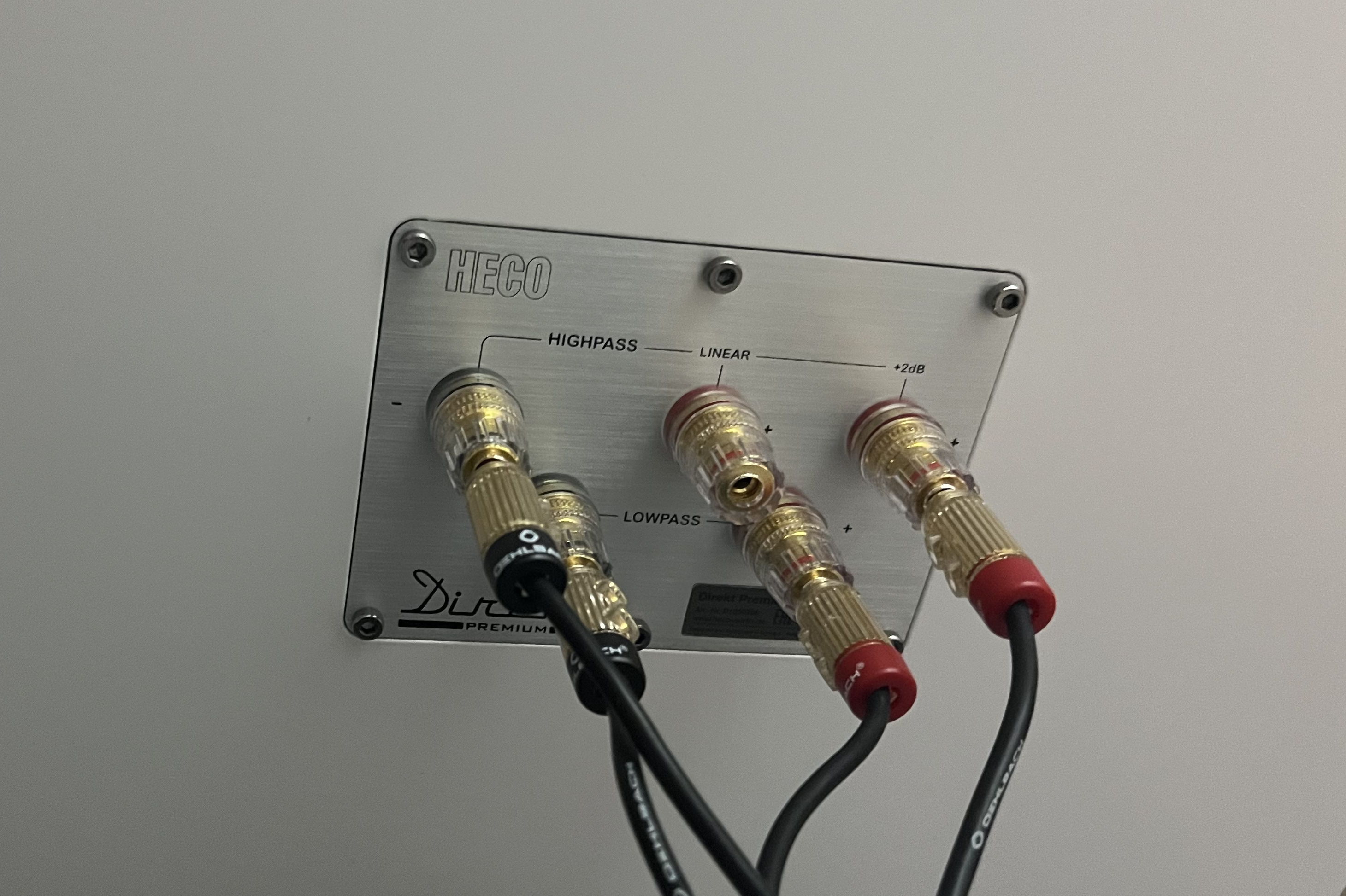 Und wo wir gerade bei Problemlösungen sind: Mit 94 dB (gemessen bei 2,8 Volt und einem Meter Abstand) haben die Lautsprecher eine überragende Empfindlichkeit. Auch kleinste HiFi-Verstärker sollten also bestens mit ihnen klarkommen. In dieser Hinsicht ähneln sie der bereits von uns getesteten Vestlyd V15C. Auf der Rückseite ermöglicht ein ausgeklügeltes Anschlussterminal nicht nur einen Bi-Amping- oder Bi-Wiring-Betrieb, sondern auch eine klangliche Feinabstimmung. Denn je nach Verkabelung kannst du den Hochtonbereich um zwei dB anheben.