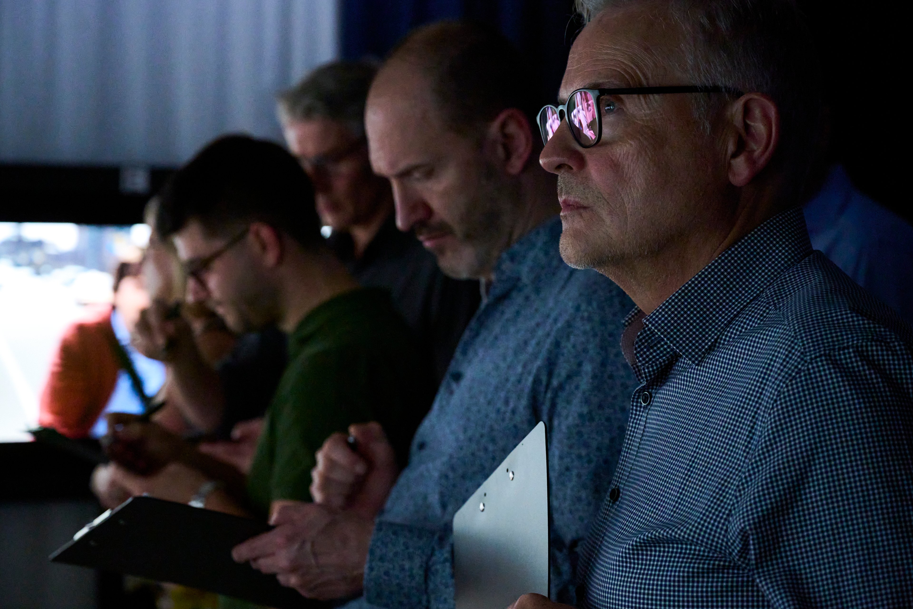 Während des HIFI.DE-Shootout war niemand aus der Jury in der Lage zu erkennen, welche TV-Modelle vor ihnen stehen. Alle TV-Gehäuse waren nämlich mit baugleichen Rahmen vollständig verdeckt. TV-Laborleiter Herbert und TV-Tester Thorben haben zudem genau darauf geachtet, dass keine verräterischen Menüs oder Symbole auf den Bildschirmen für die Jury zu sehen sind. Aufgabe unserer Gäste war es, nach jeder einzelnen Szene jedem Fernseher eine Bewertung auf der Skala von 1 bis 10 zu geben. Und zwar jede:r für sich.