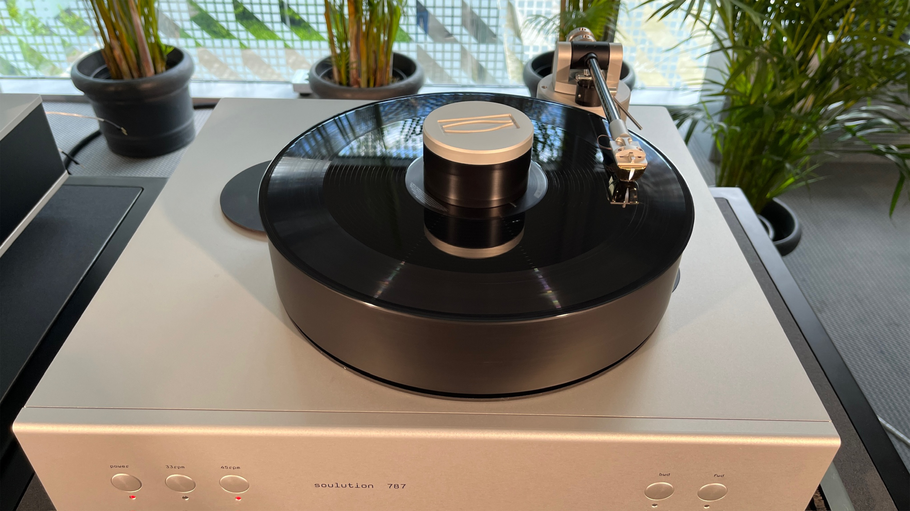 Der Soulution 787 ist ein Plattenspieler der besonderen Art. Hier bewegt sich nicht der Tonarm über den Plattenteller, sondern der Plattenteller unter dem Tonarm. So fährt der Tonarm natürlich trotzdem wie gewohnt die ganze Platte ab, bleibt aber statisch an einer Stelle. Viele Störfaktoren, die den Tonarm bei seiner Reise über den Plattenteller behindern, werden so schlichtweg ausgehebelt.