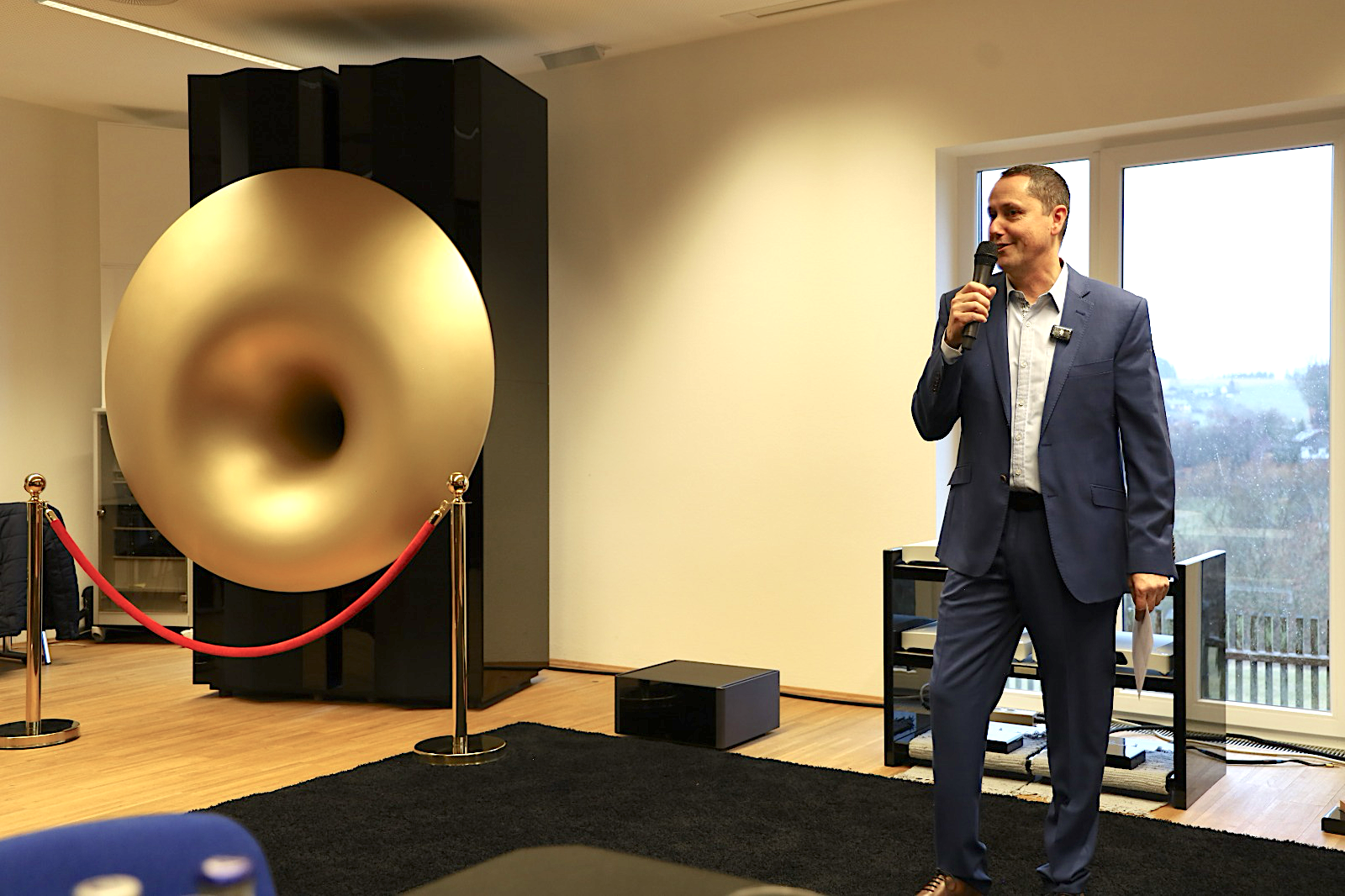 Mitte Februar war es schließlich so weit: große Eröffnung in Isen. Zahlreiche Vertreter:innen aus Industrie, Vertrieb und HiFi-Presse waren angereist. Schon im großzügig dimensionierten Empfangsbereich wurde deutlich, wohin die Reise geht. Der neue HEC-Store versteht sich nicht als klassisches Ladenlokal, sondern als Erlebnisraum.