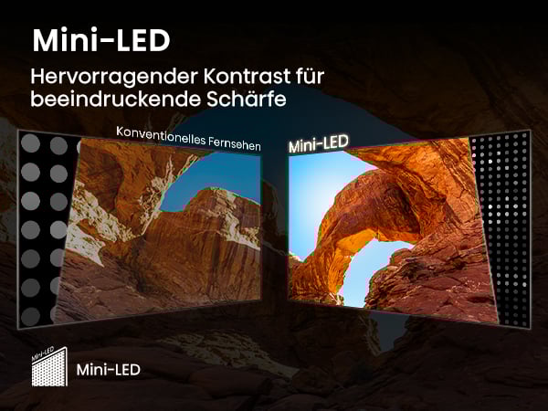 Der Hisense UXQ kommt zwar nicht mehr pünktlich zur FIFA Klub-WM 2025, sondern erst im zweiten Halbjahr, wird aber richtig viel Bildqualität mitbringen. Der Grund: er setzt auf ein Panel mit RGB Mini-LED Technik. Sprich: Das Backlight des Fernsehers besteht schon aus roten, grünen und blauen LEDs, die obendrein unabhängig voneinander gedimmt werden können. Das sorgt für mehr Farbpräzision, Strahlkraft und Kontrast.