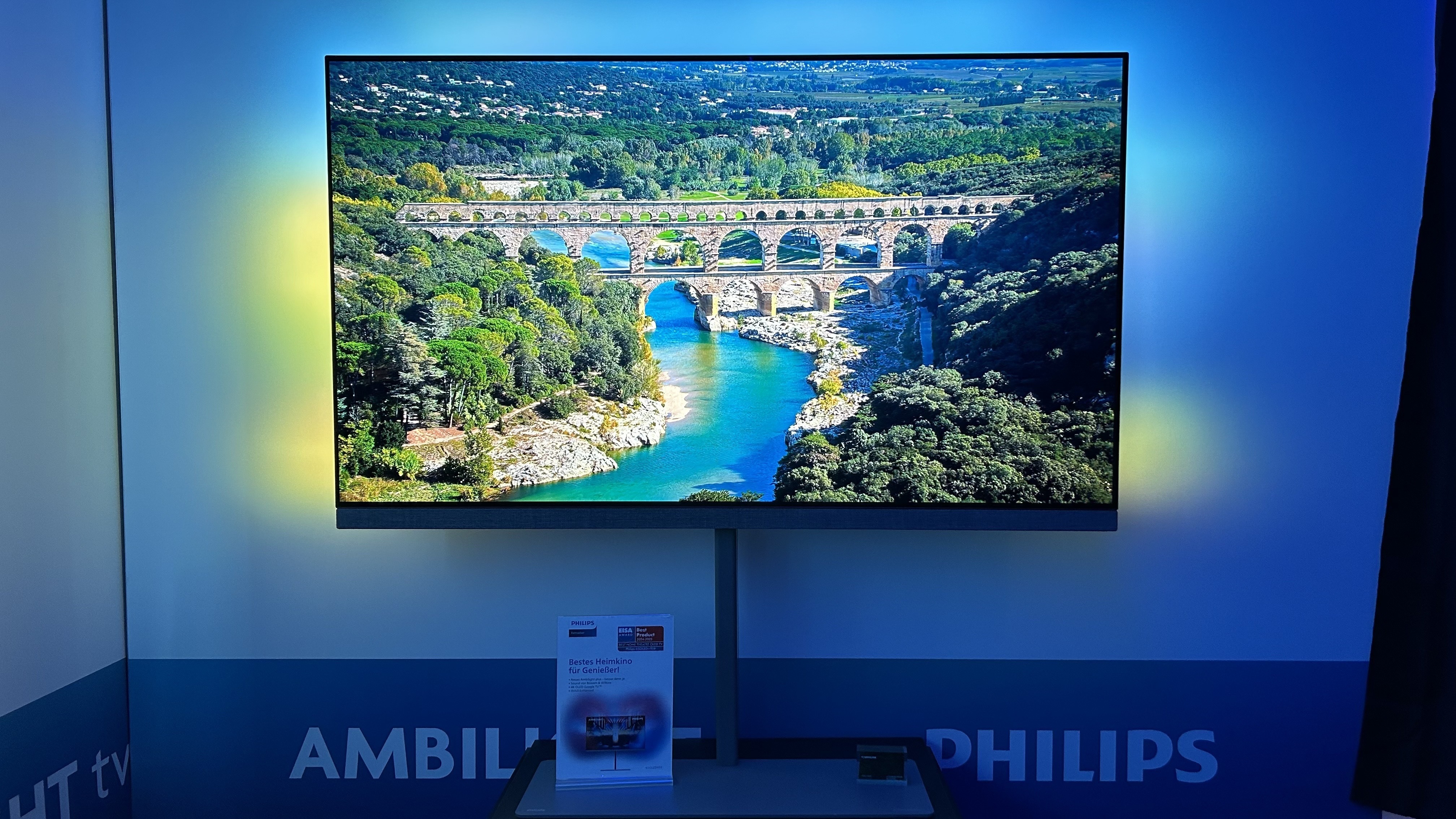 Obendrauf gab es den Philips OLED+959 zu sehen, der ebenfalls mit MLA-Panel daherkommt – und sich in unserem Test sehr gut schlug. Ebenfalls eine Neuigkeit, die zur IFA bekannt wurde: Die neuen Philips-OLEDs – und per Firmware-Update sogar die Modelle aus dem Vorjahr – erhalten den Filmmaker-Modus in Dolby Vision. So kannst du selbst beim dynamischen HDR-Format Filme so sehen, wie sie gedacht und gemastert sind.