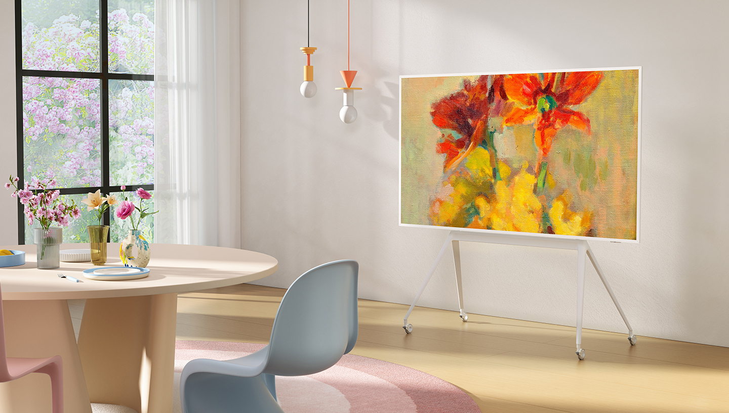 TCLs A300 gibt es in zwei Ausführungen. Die Premium-Ausführung setzt zusätzlich auf ein Soundsystem von Bang & Olufsen und heißt TCL A300 Pro – und kam bei uns im Test gut weg. Sonst ist er dem The Frame von Samsung sehr ähnlich. Dich erwartet ein QLED-Fernseher mit einer matten Beschichtung, die zum einen im hellen Raum Spiegelungen vermeidet, zum anderen aber den Eindruck erweckt, Bilder wie auf einer Leinwand darzustellen. Denn das große Verkaufsargument sind die Kunstwerke, die du im Standby-Zustand anzeigen lassen kannst.