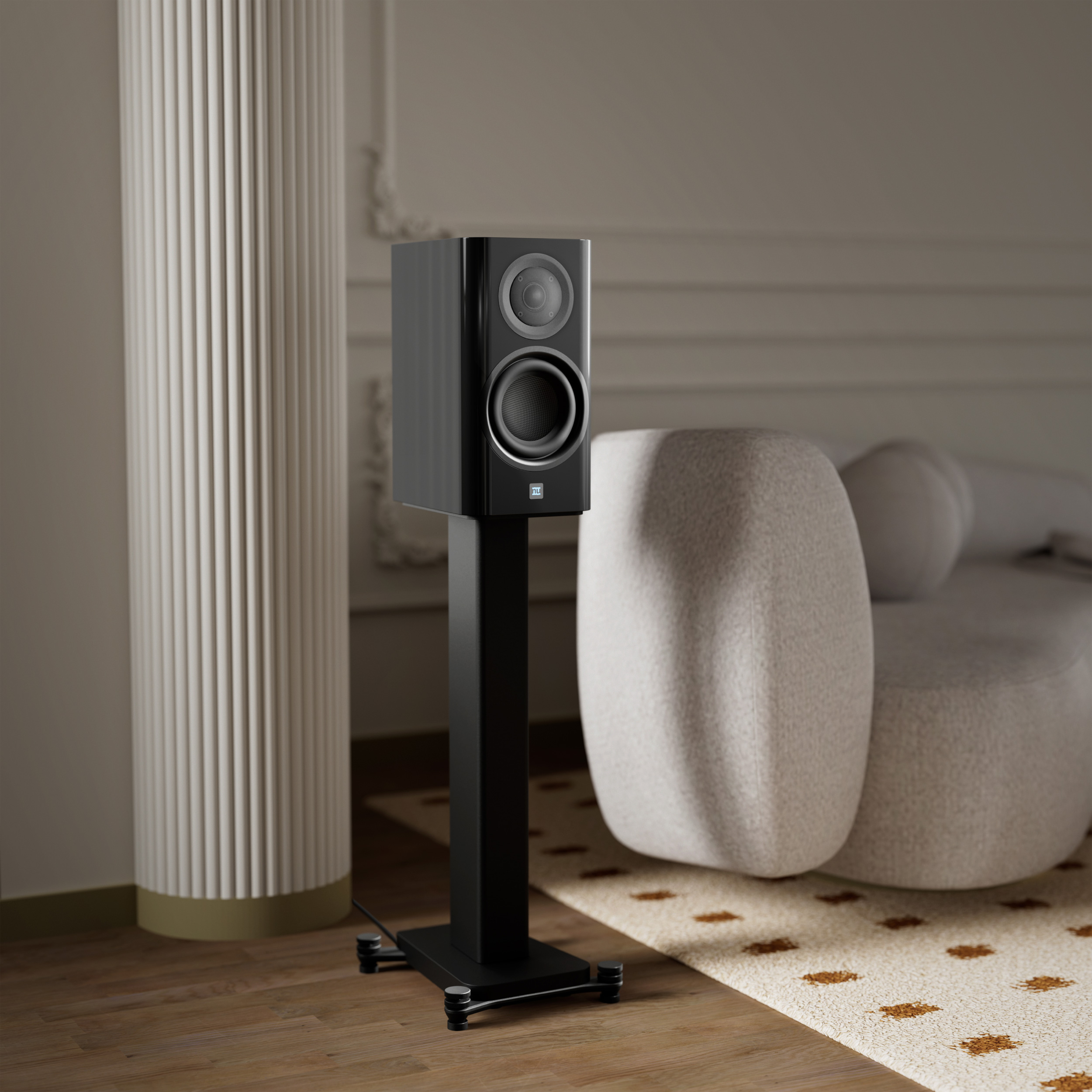 Die nuZeo 3 ist mit den Maßen 330 x 180 x 270 Millimeter (HxBxT) und 9,7 Kilogramm die kleinste Box der nuZeo-Serie. Wie seine großen Geschwister setzt der aktive Regallautsprecher auf eine Tetrongewebekalotte, die von einem Hochleistung-Tieftöner auf Carbonfaser unterstützt wird. Dabei soll die nuZeo 3 einen Frequenzgang von 44 Hz bis 22 kHz abdecken. Die verbauten Verstärker sorgen mit 320 Watt Leistung für ausreichend Kraft. Farblich kannst du dich zwischen Schwarz und Weiß entscheiden, wobei beide Farben in einer hochglänzenden Klavierlack-Optik kommen.