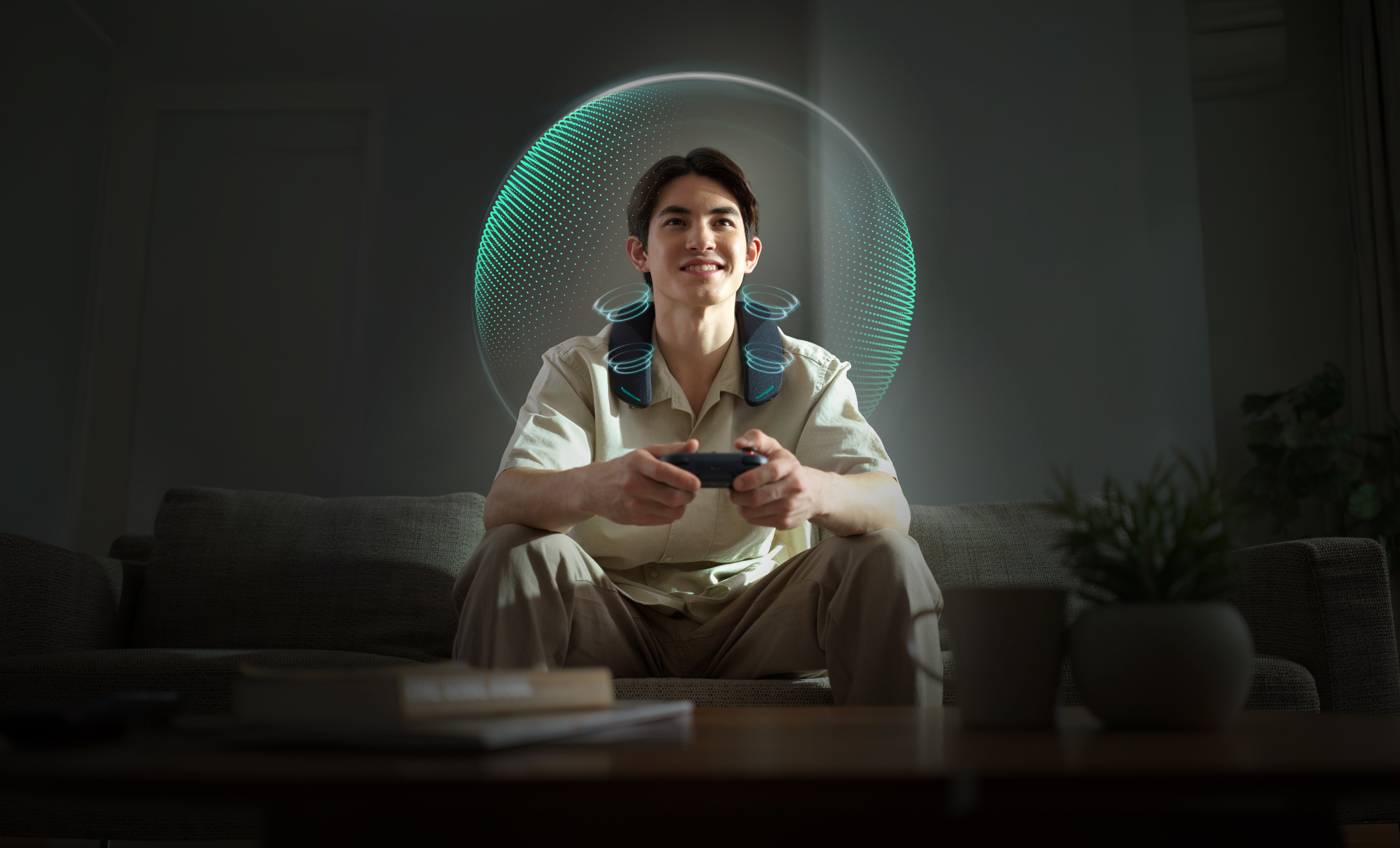 Bild: PanasonicSurround-Sound für deine Lieblingsspiele, und das ohne sperrige Lautsprecher-Aufbauten und ohne Stöpsel in den Ohren: Da wirst du hellhörig? Möglich macht’s der Panasonic SC-GNW30. Was zunächst wie ein Nackenkissen aussieht, entpuppt sich auf den zweiten Blick als Surround-Sound-Multitalent. Hier erfährst du, was du mit dem Nackenlautsprecher alles anfangen kannst.