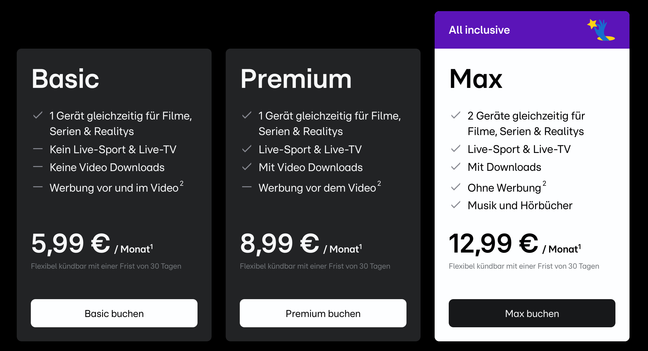 Sprecher:innen von RTL Deutschland sowie der Telekom sprechen von einer deutschen Erfolgsgeschichte. Allerdings ist das natürlich nur die halbe Wahrheit, denn beide Plattformen sind verhältnismäßig kleine Lichter, wenn man sie mit US-Streaming-Diensten wie Amazon Prime Video, Disney+ oder auch Netflix vergleicht. Sollte dir im Übrigen bei MagentaTV RTL+ Premium nicht ausreichen, dann enthält der optional gegen Aufpreis zubuchbare Max-Tarif zusätzlich auch noch Musik und Hörbücher.