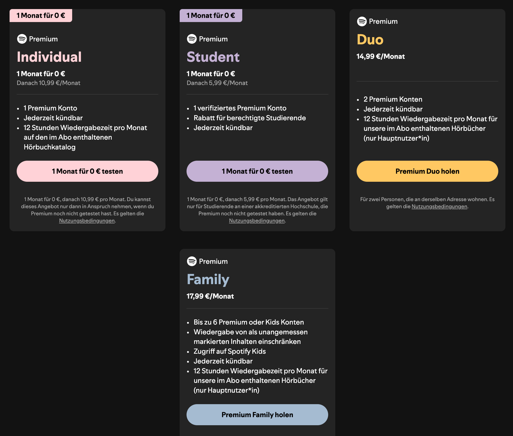 Wie schon erwähnt: Spotify nimmt bisher nicht konkret auf Deutschland Bezug, es sieht aber stark danach aus, dass die Preiserhöhung ab September 2025 auch hierzulande greift. Klar ist, dass das Single-Abo einen Euro teurer werden soll. Es wird also bald die besagten 11,99 Euro kosten. Der erhöhte Preis soll dann auch direkt für Neukund:innen gelten. Aktuell zeigt die offizielle Website allerdings noch die alten Summen an. Offen ist, ob z. B. auch das Duo-Abo für zwei Personen sowie der Familientarif teurer werden. Dazu macht das Unternehmen noch keine Angaben.
