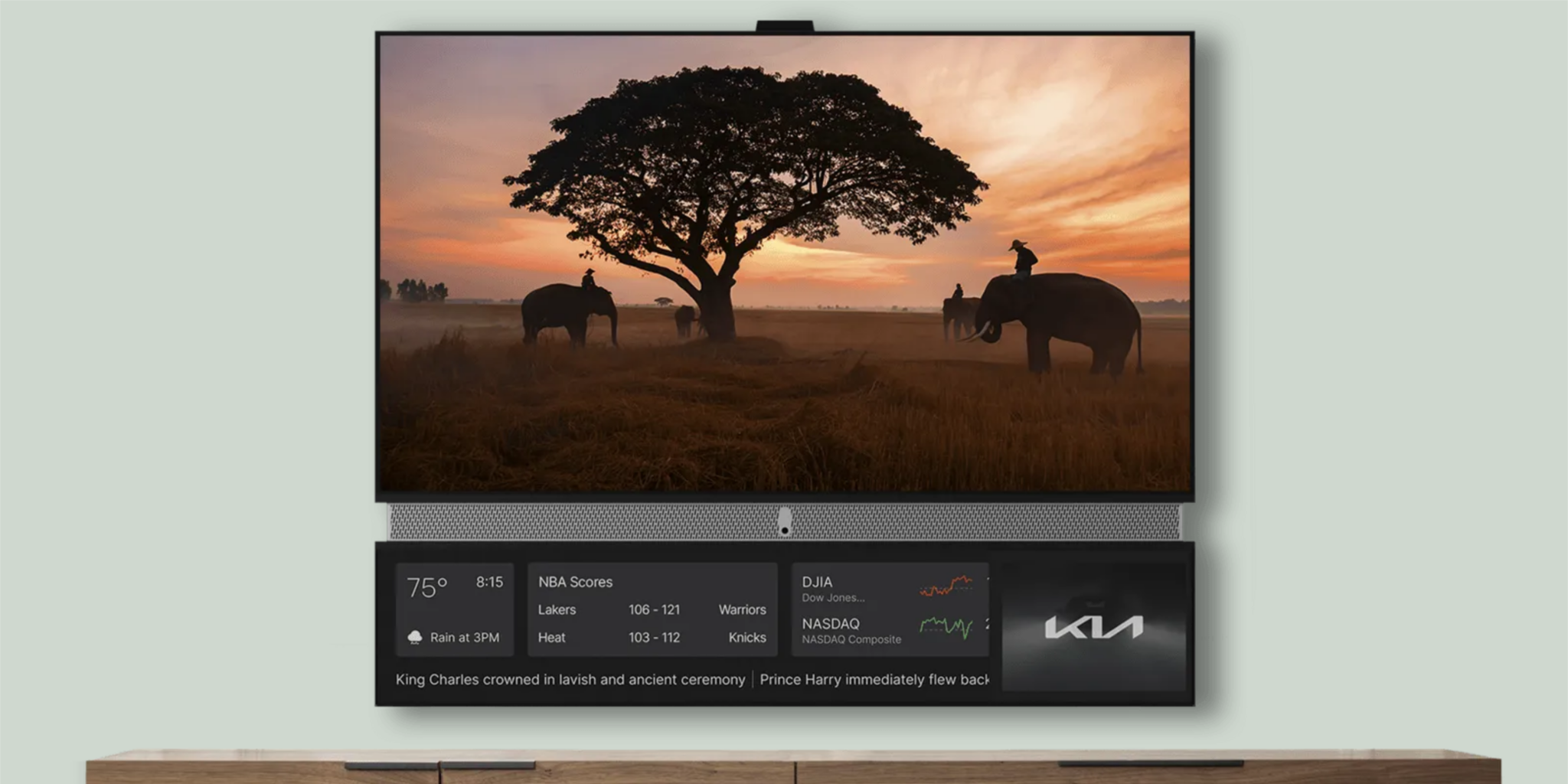 Das Prinzip des Gratis-Fernsehers ist dabei simpel: Du erhältst den Fernseher kostenlos, musst aber damit leben, dass am unteren Rand eine Bildleiste prangt, die permanent aktiv ist und Werbung einblendet. Diese lässt sich auch nicht verdecken, da über verschiedene Sensoren überwacht wird, ob die Werbung sichtbar bleibt. Allerdings erfüllt das untere Zweit-Display auch andere Funktionen. Es kann z. B. über Widgets Aktienkurse, Sportergebnisse oder Wetterinformationen anzeigen (via Lowpass).