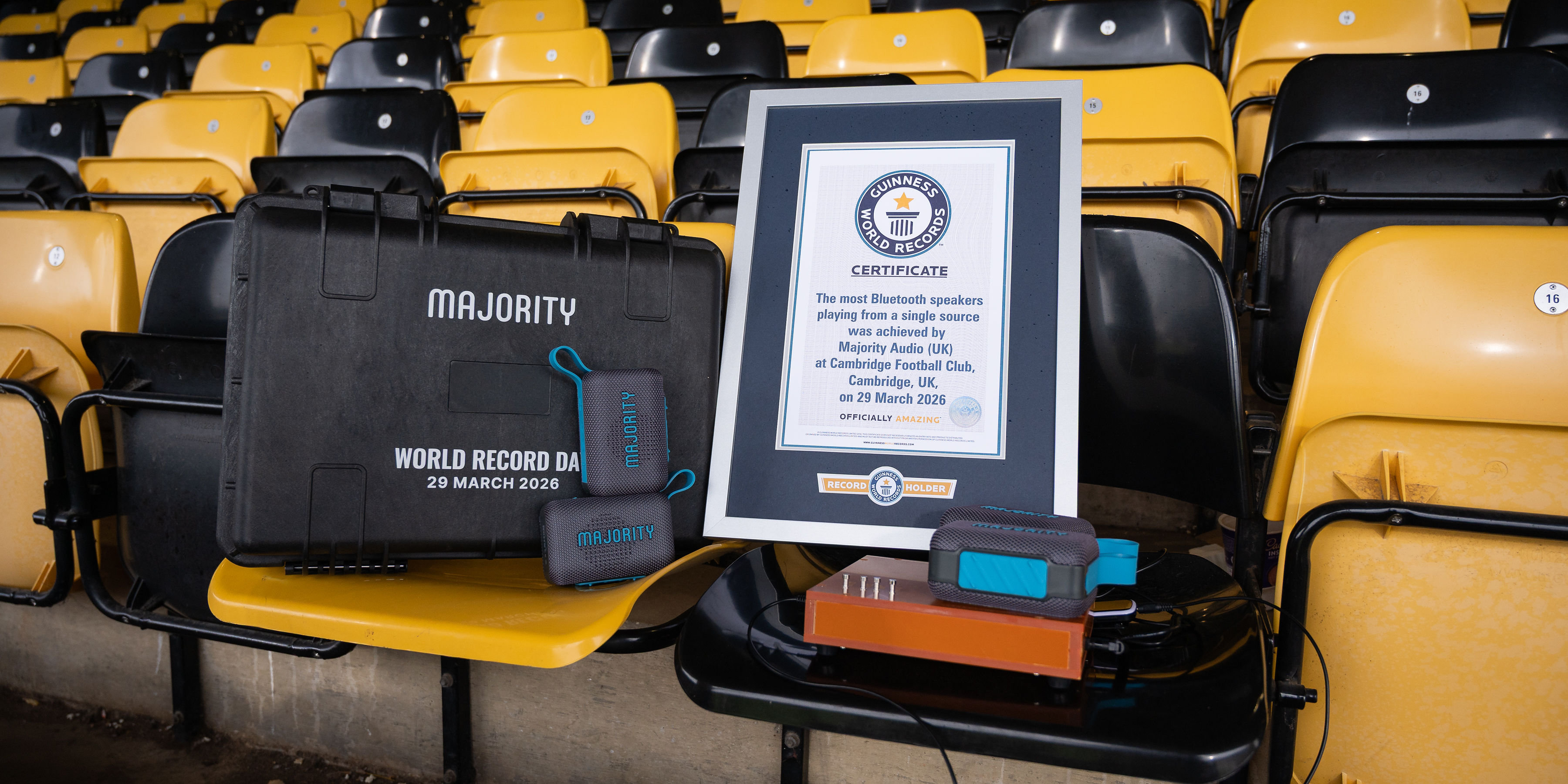 Bislang hielt der Hersteller JBL den Weltrekord: Rund 1000 Bluetooth-Speaker ließen die Audiospezialisten vor einigen Jahren zusammenschalten. Damit sicherten sie sich einen offiziellen Eintrag bei den Guinness World Records. Doch jener Rekord ist am 29. März 2026 bei einem Spiel der Frauenfußballmannschaft Cambridge United Women gebrochen worden. Für den neuen Weltrekord kamen dieses Mal Lautsprecher von Majority Audio zum Einsatz.