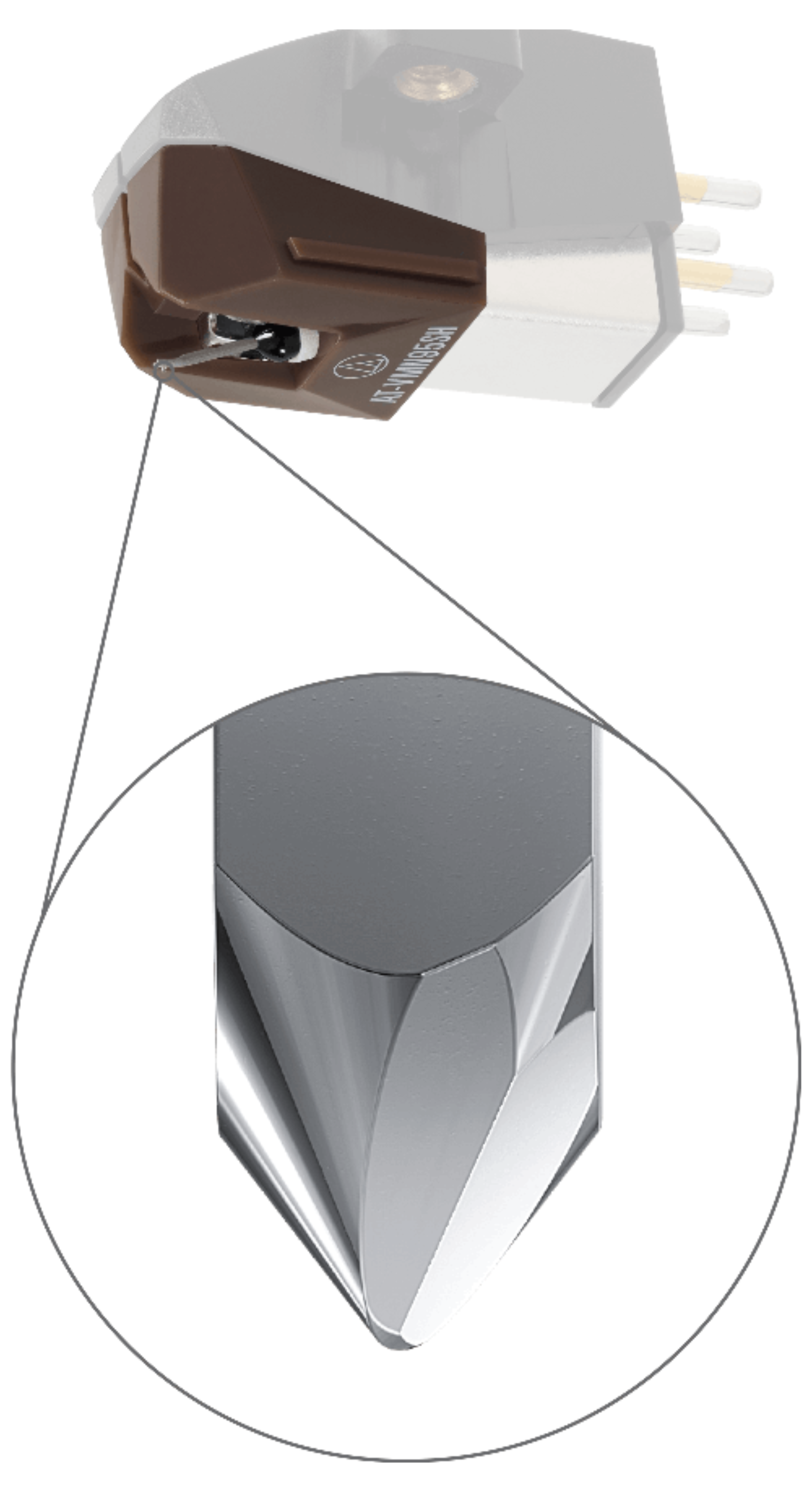 Warum die Abtastnadel eines analogen Plattenspielers ausgerechnet eine Diamantspitze nutzt, um die Musik in den Rillen deiner Platten mechanisch abzutasten, ist schnell geklärt. Sie muss einerseits rund und spiegelglatt sein, um reibungsarm durch die Rille zu gleiten. Andererseits aber auch schlank genug, um feinsten Hochtondetails folgen zu können. Der Werkstoff Diamant sorgt dafür, dass die Spitze dabei lange ihre Form und Politur bewahrt.