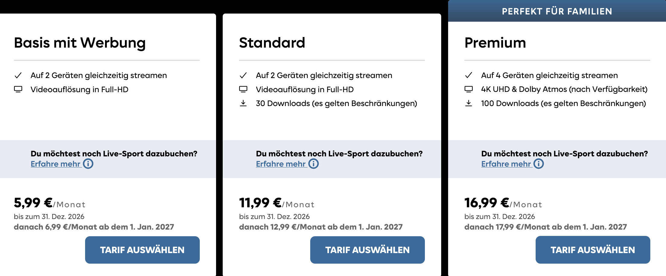 Wichtig: Die genannten Preise gelten nur bis 1. Januar 2027. Anschließend erhöhen sich die monatlichen Kosten von HBO Max in allen Abos um einen Euro – also auf 6,99, 12,99 und 16,99 Euro.