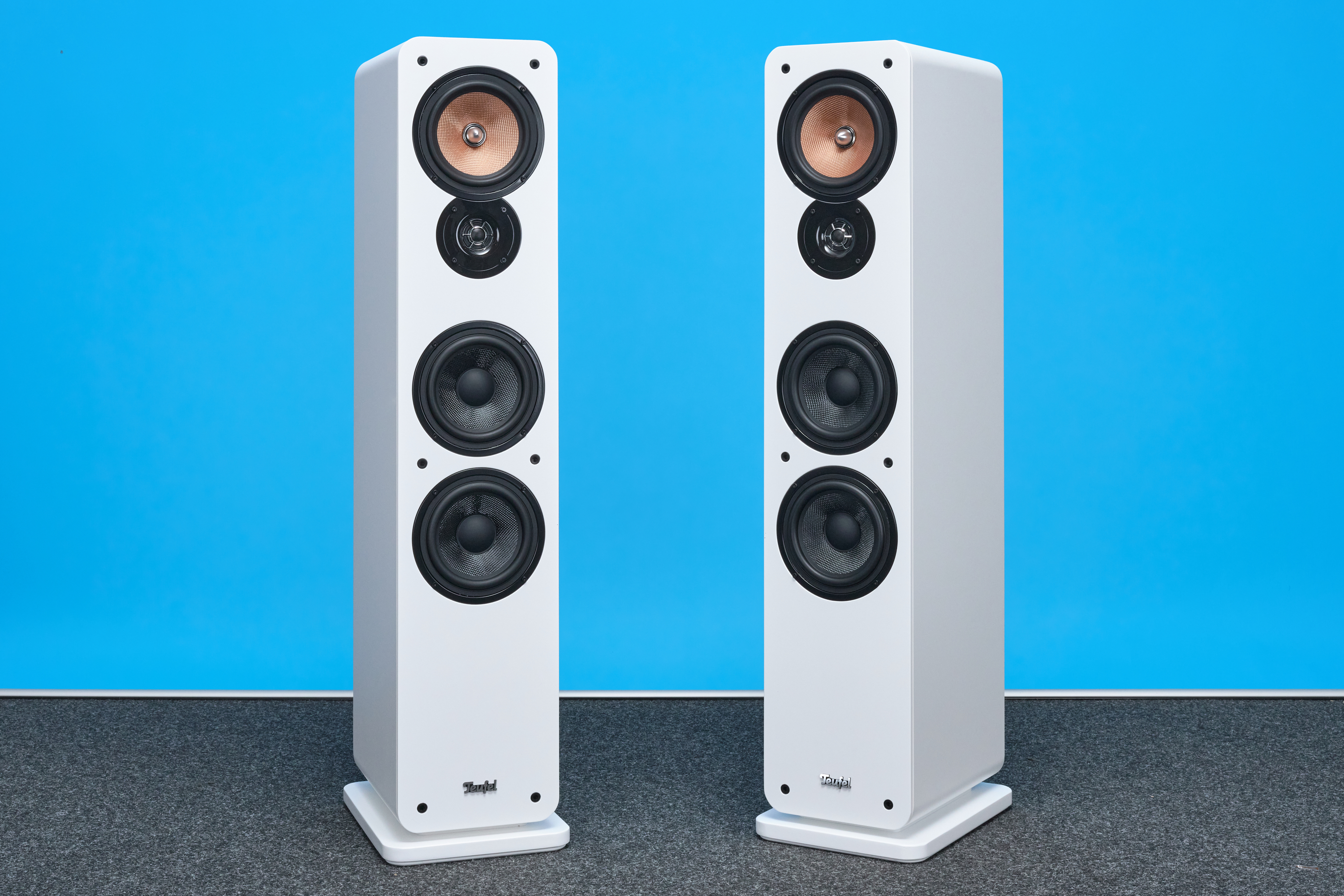 Eine ganz klassische 2,5-Wege-Konstruktion ist etwa die von uns getestete ELAC Solano FS287. Diese Standbox verfügt über einen Hochtöner und zwei identische Tiefmitteltöner. Die meiste Zeit spielt aber nur der obere Tiefmitteltöner, erst bei wirklich tiefen Frequenzen unterhalb von 450 Hz springt ihm der zweite Treiber unterstützend zur Seite.