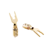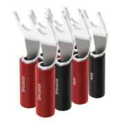 Wenn deine Lautsprecher und dein Verstärker es zulassen, solltest du deine Lautsprecherkabel mit Bananensteckern oder Kabelschuhen ausstatten. Beide lassen sich einfach an die freigelegten Kupferadern anschrauben. Das bietet gleich mehrere Vorteile: Zum einen vereinfacht es dir sehr, deine Lautsprecher anzuschließen. Schließlich musst du nicht mehr die einzelnen Adern verdrillen und in den Polklemmen festschrauben, während du auf allen Vieren hinter deinen Boxen kauerst. Bananenstecker kannst du einfach in die Löcher im Zentrum der Polklemmen stecken, Kabelschuhe schiebst du in ihren Schlitz und schraubst sie dann fest ein.
