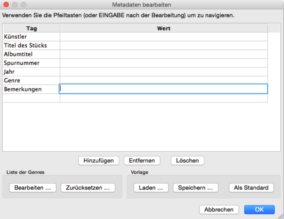 Wenn du CDs brennst oder auf deinem PC speicherst, kann das Laufwerk sie auch mit einem Vielfachen der üblichen Geschwindigkeit bewegen. Das beschleunigt den Prozess merklich. Bei Schallplatten funktioniert das natürlich nicht. Hier wird in Echtzeit digitalisiert. Also entweder mit 33 ⅓, 45 oder bei Schellackplatten mit 78 Umdrehungen pro Minute. Du solltest dir also genug Zeit nehmen, wenn du das Projekt angehst. Gerade wenn du Lieder einzeln speichern möchtest, musst du durchgehend anwesend sein, da die Aufnahme immer wieder gestoppt und abgespeichert werden muss. Da Vinyl-Platten keine Metadaten in ihren Rillen tragen, müssen diese Informationen im Metadaten-Editor manuell eingegeben werden.