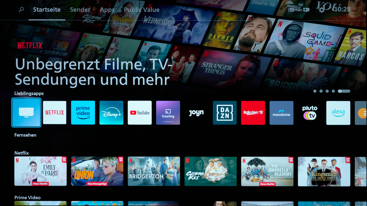 Mit Titan OS haben Philips-Fernseher ein eigenes Betriebssystem aus Europa, das unabhängig von Google oder FireTV arbeitet. Es ist schnell und bedienfreundlich, eine spezielle Kontoanmeldung wird nicht von dir verlangt. Die Auswahl an Apps und Streamingdiensten ist gut. Sie fällt zwar kleiner aus als bei Google, FireTV, Samsung Tizen und LG WebOS, wird aber für die meisten Nutzer und Nutzerinnen wohl völlig ausreichen. Wir gehen davon aus, dass das Angebot kontinuierlich erweitert wird.