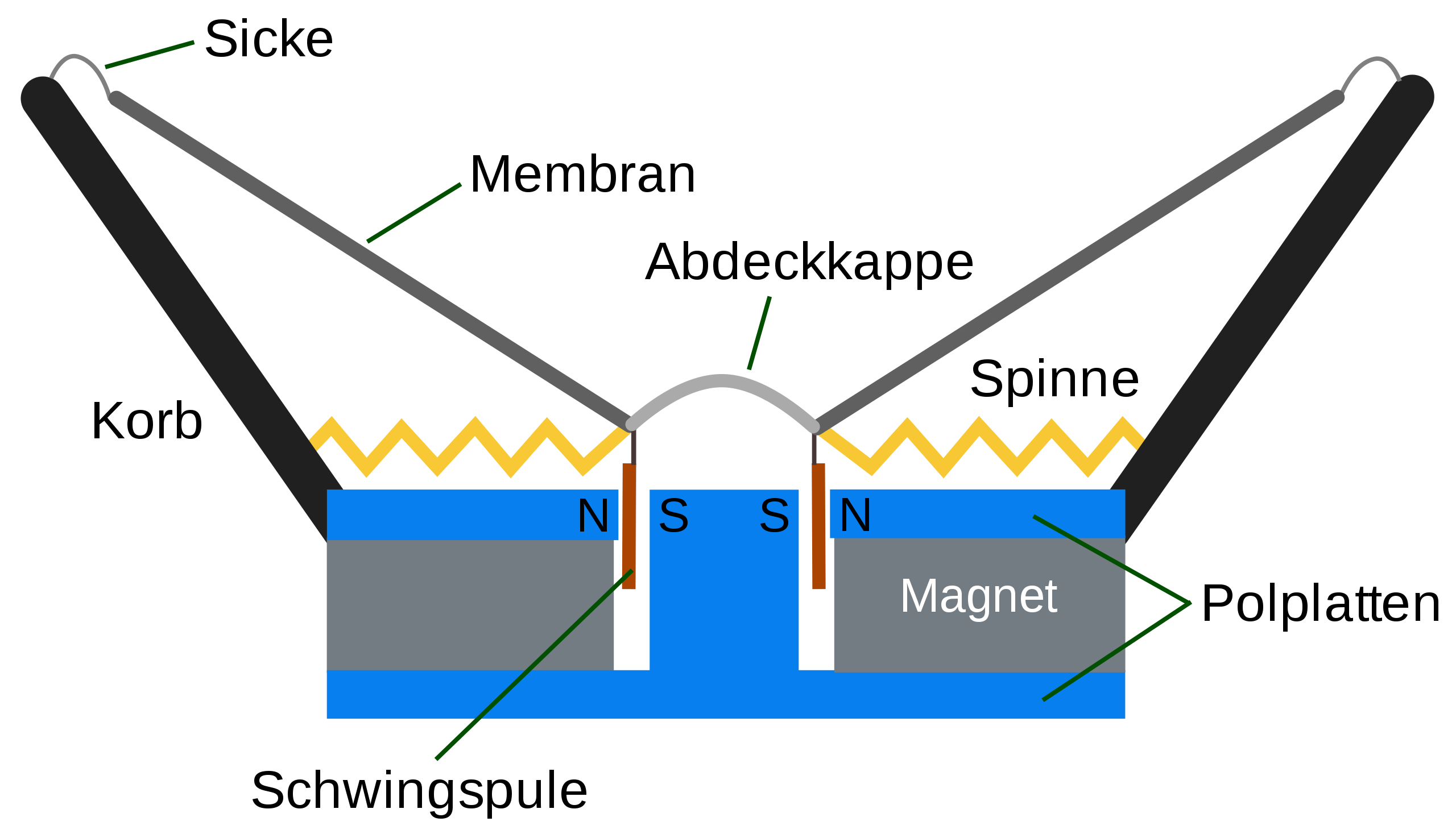 Elektromagneten kennst du vielleicht noch aus dem Physikunterricht. Fließt Strom durch einen Draht, entsteht ein Magnetfeld. Wickelst du diesen Draht zu einer Spule auf, verstärkt sich das Magnetfeld. Umgib die Spule nun mit einem Dauermagneten und sie wird sich entweder zu ihm oder von ihm weg bewegen – je nachdem, in welche Richtung der Strom durch den Draht fließt. Wenn du jetzt eine Membran an der Spule befestigst, bewegt sich diese im Rhythmus des Stroms – und versetzt dabei Luft in Schwingungen.