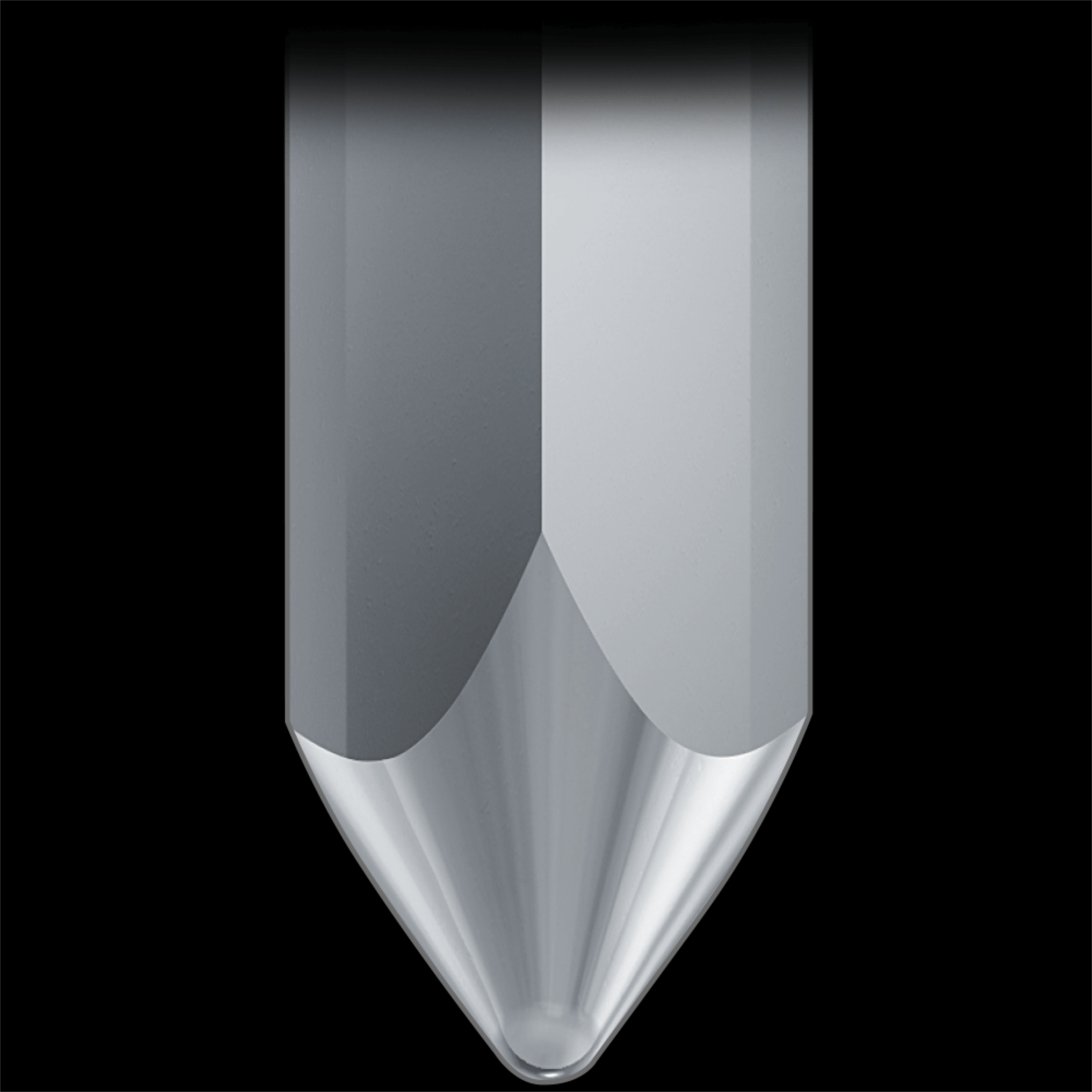 Schleift der Hersteller eine sphärische Nadel vorne und hinten etwas ab, ergibt das eine elliptische Spitze. Die seitlichen Radien – also die Kontaktstellen zur Rille – sind jetzt mit um die acht Mikrometer deutlich kleiner. Daher kann dieser Schliff die Höhen sauberer abtasten. Noch schlanker sind Fineline- und hyperelliptische Schliffe, aber da ist noch lange nicht Schluss: In den 70er, 80er Jahren entwickelte man immer komplexere Schliffgeometrien, die sich immer perfekter in die Rillen schmiegten.