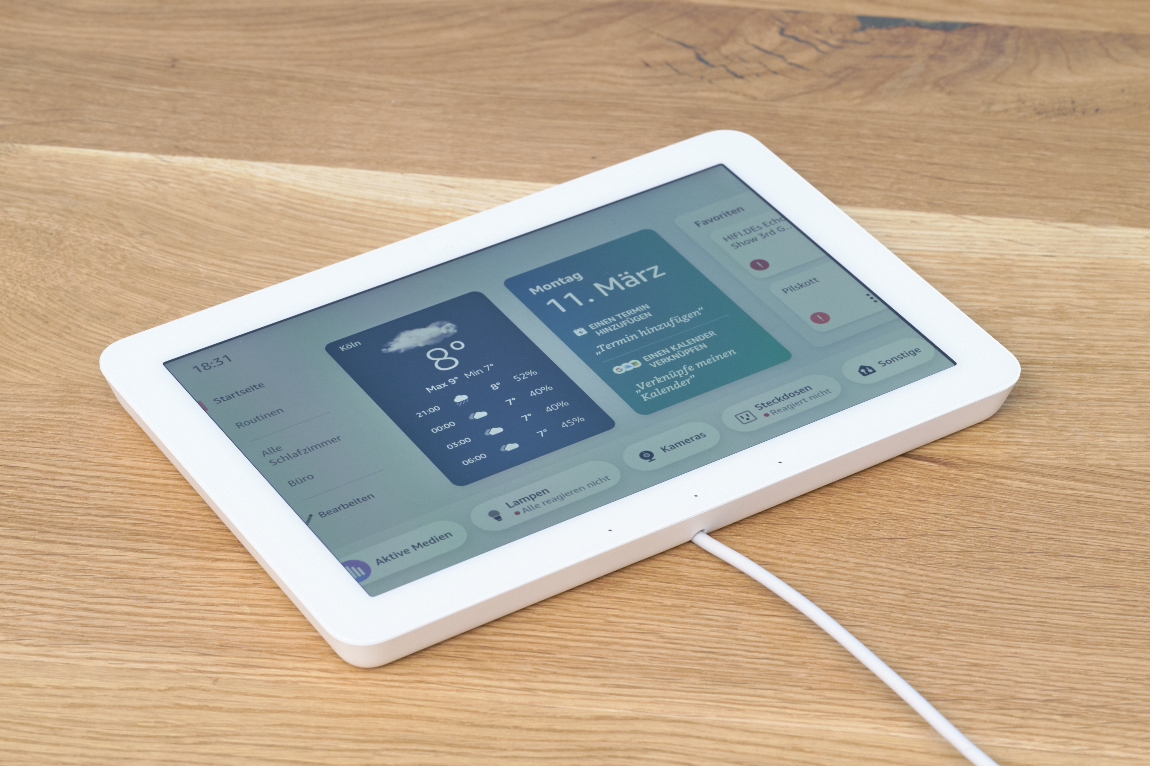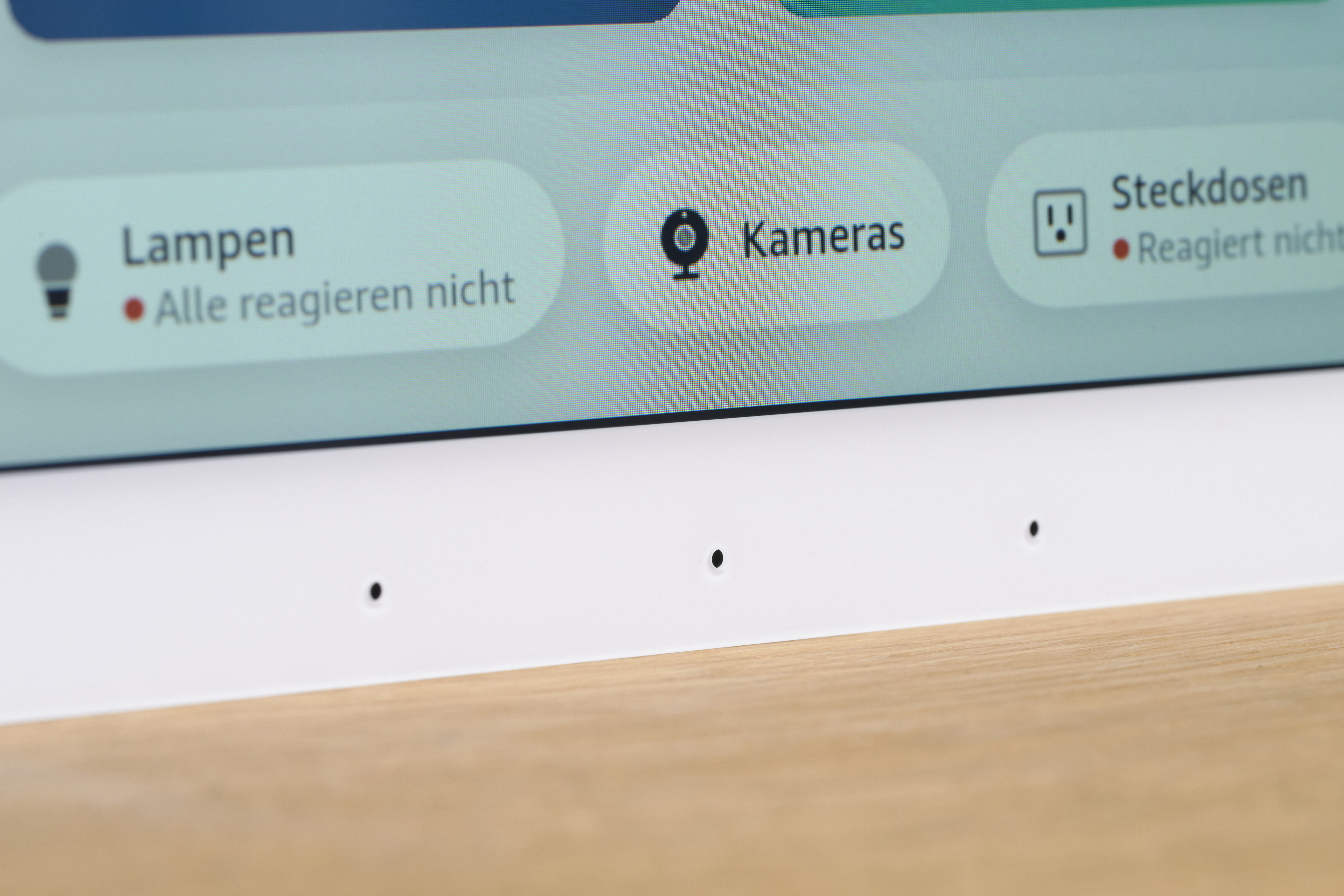 Störender ist die stellenweise ungewöhnlich träge Bedienung, die den Echo Hub plagt. Das Verschieben der Widgets oder die Navigation durch die übersichtlichen Einstellungen per Touchscreen wird von deutlichem Ruckeln begleitet, das im Jahr 2024 schlichtweg nicht mehr zeitgemäß ist. Fairerweise merkt man davon im Alltag nur noch selten etwas, da die Interaktion mit den Smart-Home-Widgets die Befehle unverzüglich an die verbundenen Geräte weiterleitet.