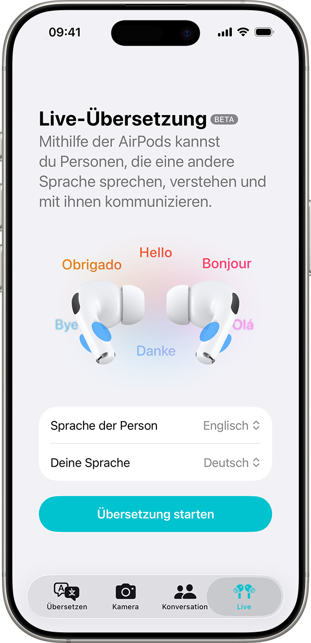 Pünktlich zum Release der AirPods Pro 3 hat Apple auch die AirPods Pro der zweiten Generation mit einer neuen Funktion ausgestattet. Der Live-Übersetzer sorgt hier, ähnlich wie bei Samsungs Galaxy Buds3 und Buds3 Pro, dafür, dass du Sprachbarrieren sowohl in persönlichen Gesprächen als auch in Telefonaten ohne Probleme überwinden kannst. Dafür ist einfach nur ein kompatibles iOS-Gerät notwendig, auf dem du dann die gewünschten Sprachen auswählst.