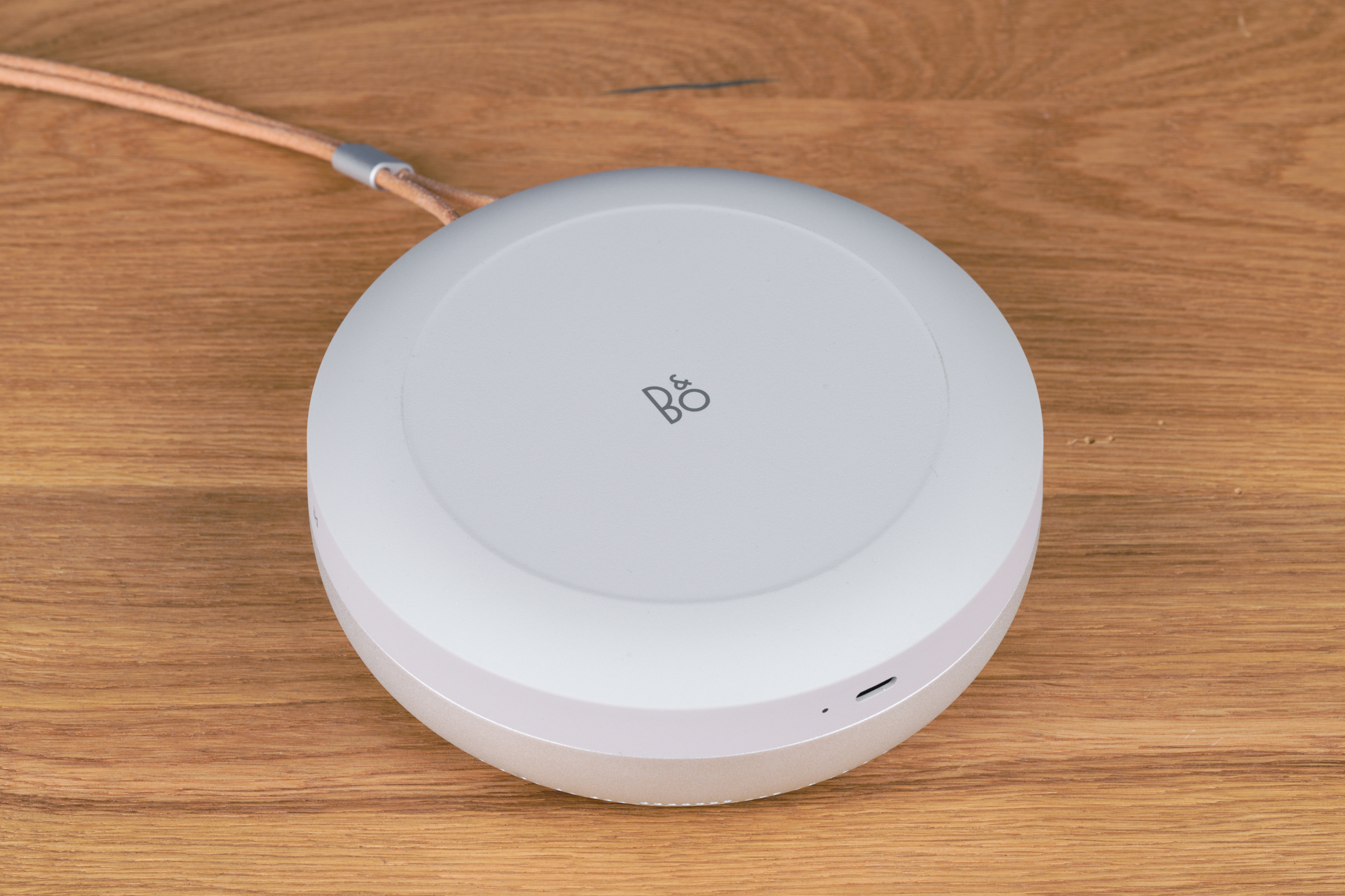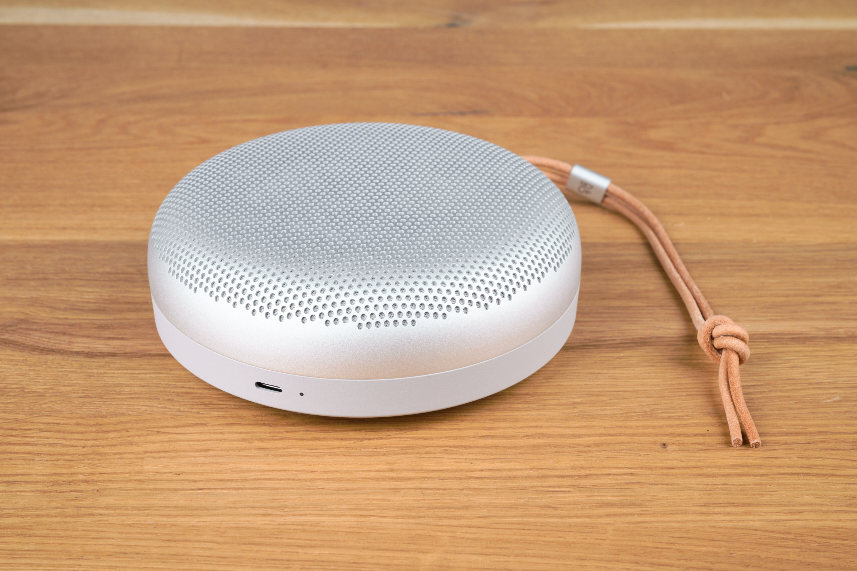 Ausgeliefert wird der Bluetooth-Lautsprecher außerdem mit einer integrierten Trageschlaufe, die du theoretisch auch lösen kannst, um den Beosound A1 noch cleaner aussehen zu lassen. Etwas schade: Alle fünf Farbvarianten setzen auf einen Riemen aus Echtleder, eine synthetische Alternative wird nicht angeboten.
