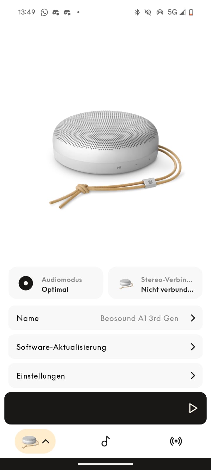 Das macht die Bedienung noch intuitiver und führt schnell zu einem zufriedenstellenden Ergebnis. Ansonsten kannst du deinen Lautsprecher in der App noch umbenennen und die dargestellte Farbversion in der App ändern. Ob hier wohl jemand seinen silbernen Beosound A1 digital zu einem roten transformiert? Möglich ist es jedenfalls.