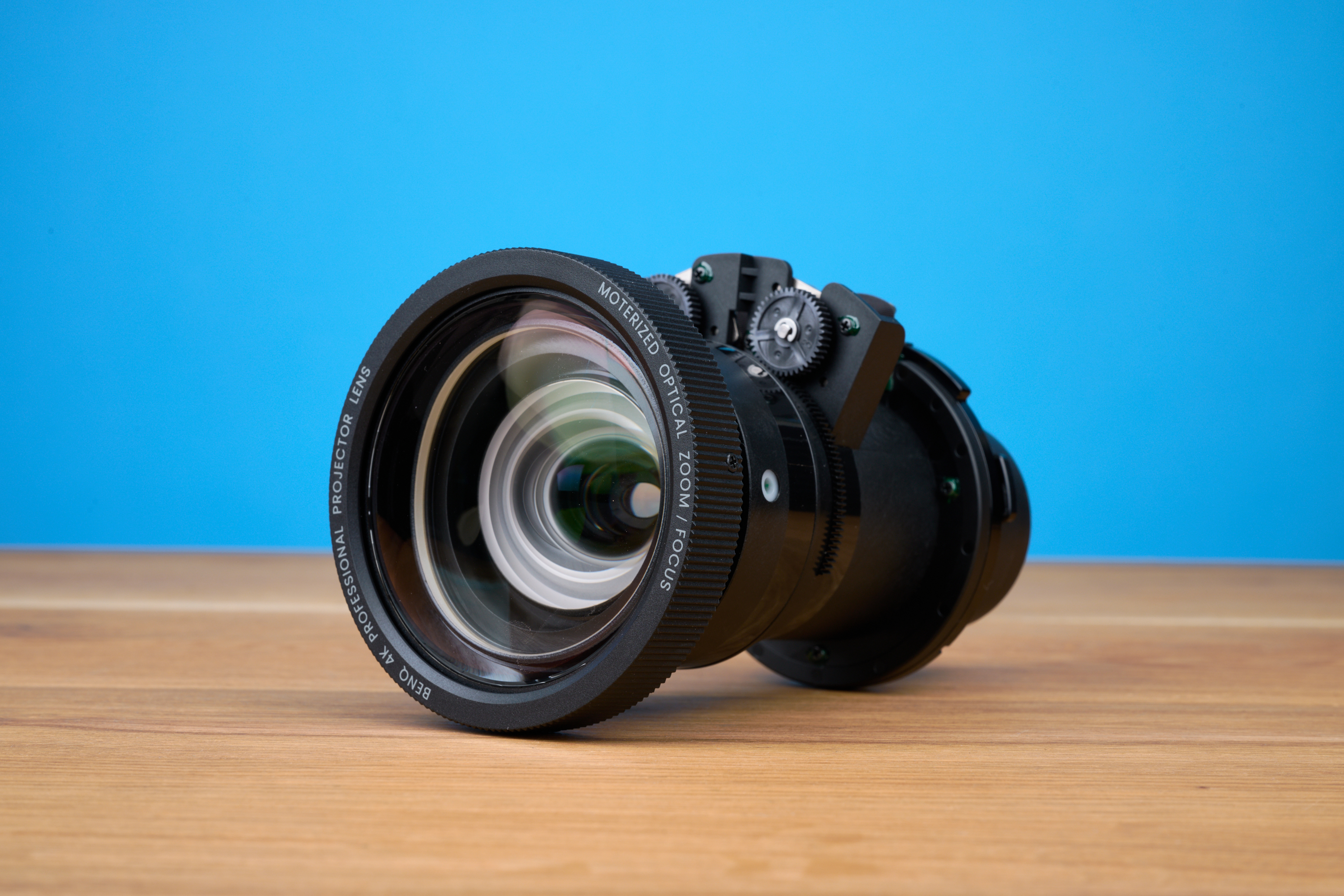 Vor dem Sichttest und unseren Messungen müssen wir den BenQ W5850 erst einmal einrichten. Um beim Transport Schäden zu vermeiden, ist das Objektiv separat verpackt. Wir müssen also erst einmal Beamer und Objektiv miteinander vertraut machen.