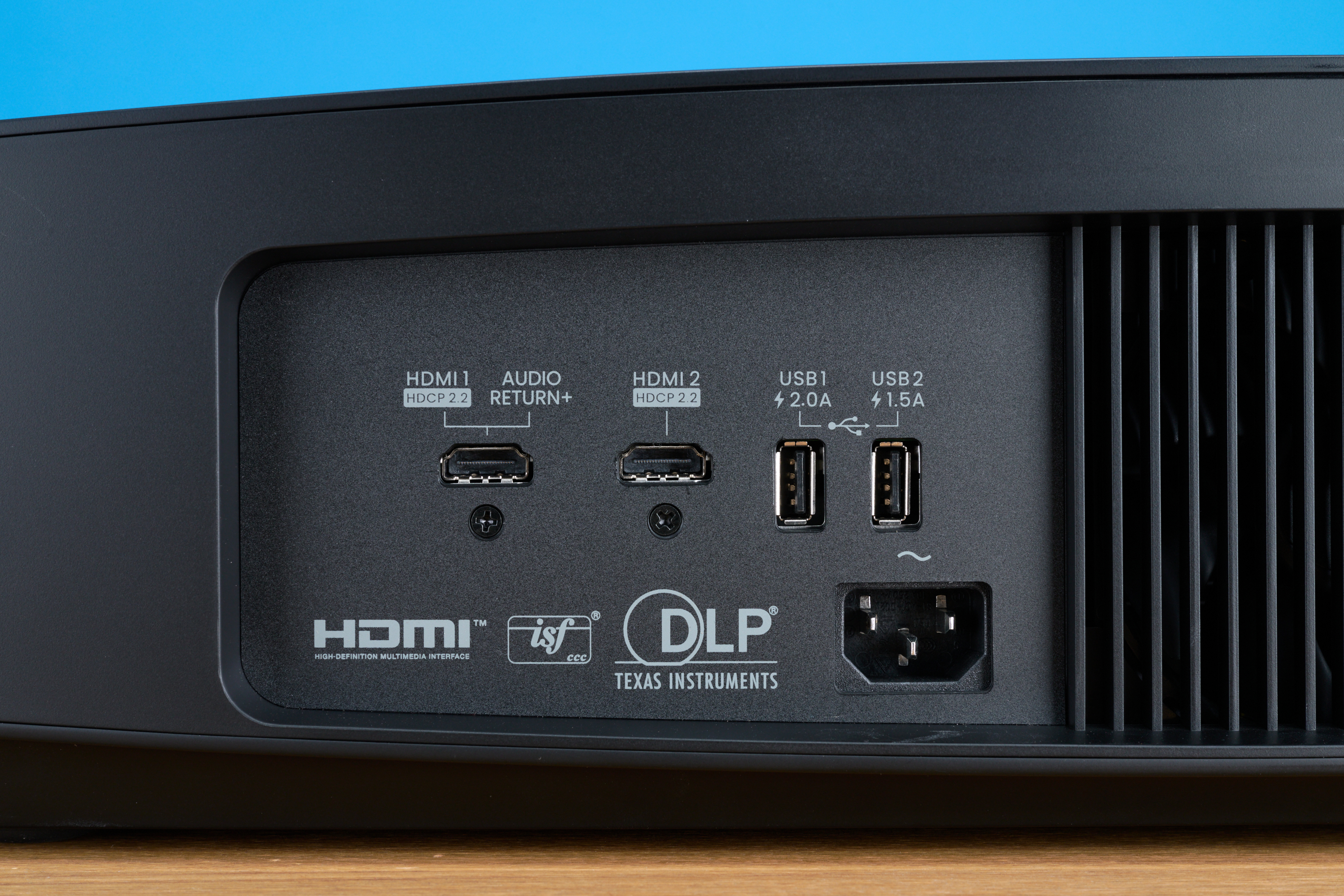 Nebenbei gibt es noch zwei USB-Buchsen, um etwa Geräte mit Strom zu versorgen, und eine LAN-Buchse, um den Beamer ins Netzwerk zu integrieren. RS-232 kann als Schnittstelle zur Steuerung verwendet werden, 3D Sync Out zum Synchronisieren eines Senders für 3D-Brillen.