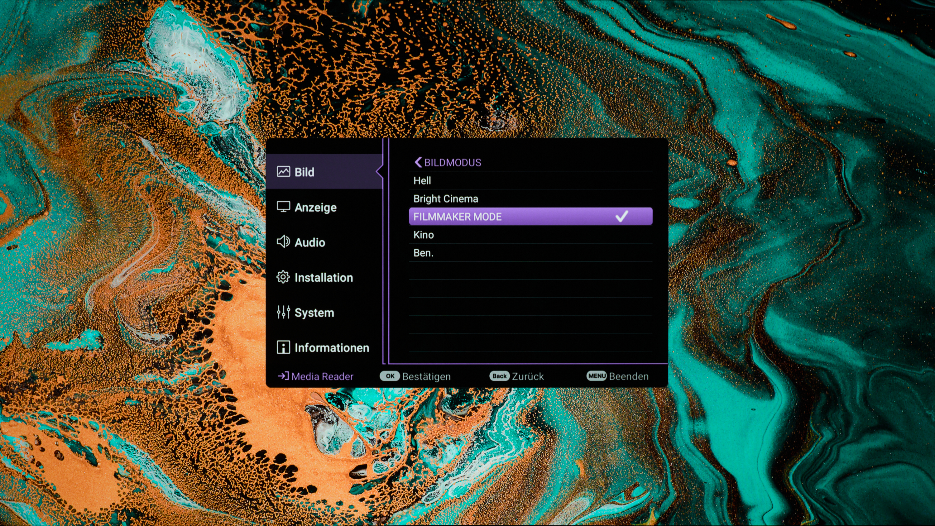Für unsere Messungen und auch alle Sichttests entscheiden wir uns dann für den Bildmodus Filmmaker. Der wirkt schon auf den ersten Blick sehr natürlich. Wir sind wirklich gespannt – und sollen überrascht werden.
