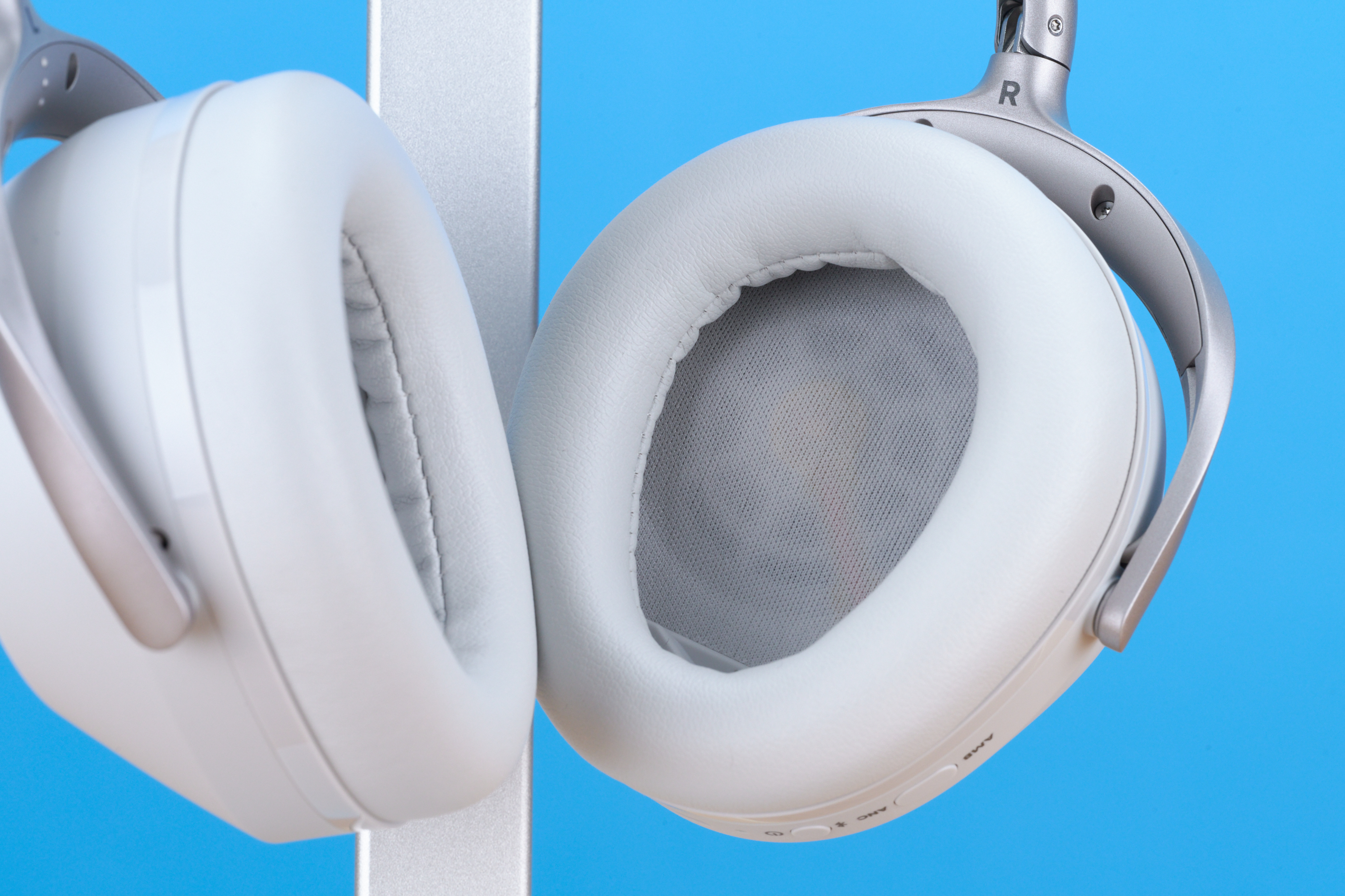 Das Gehäuse des Beyerdynamic Aventho 300 besteht größtenteils aus Kunststoff. Kopfbügel und Ohrmuscheln sind mit einem weichen Kunstleder überzogen, das angenehm auf der Haut aufliegt. Die Drehgelenke, die die Muscheln mit dem Bügel verbinden, bestehen hingegen aus Aluminium und wirken dadurch sehr stabil.