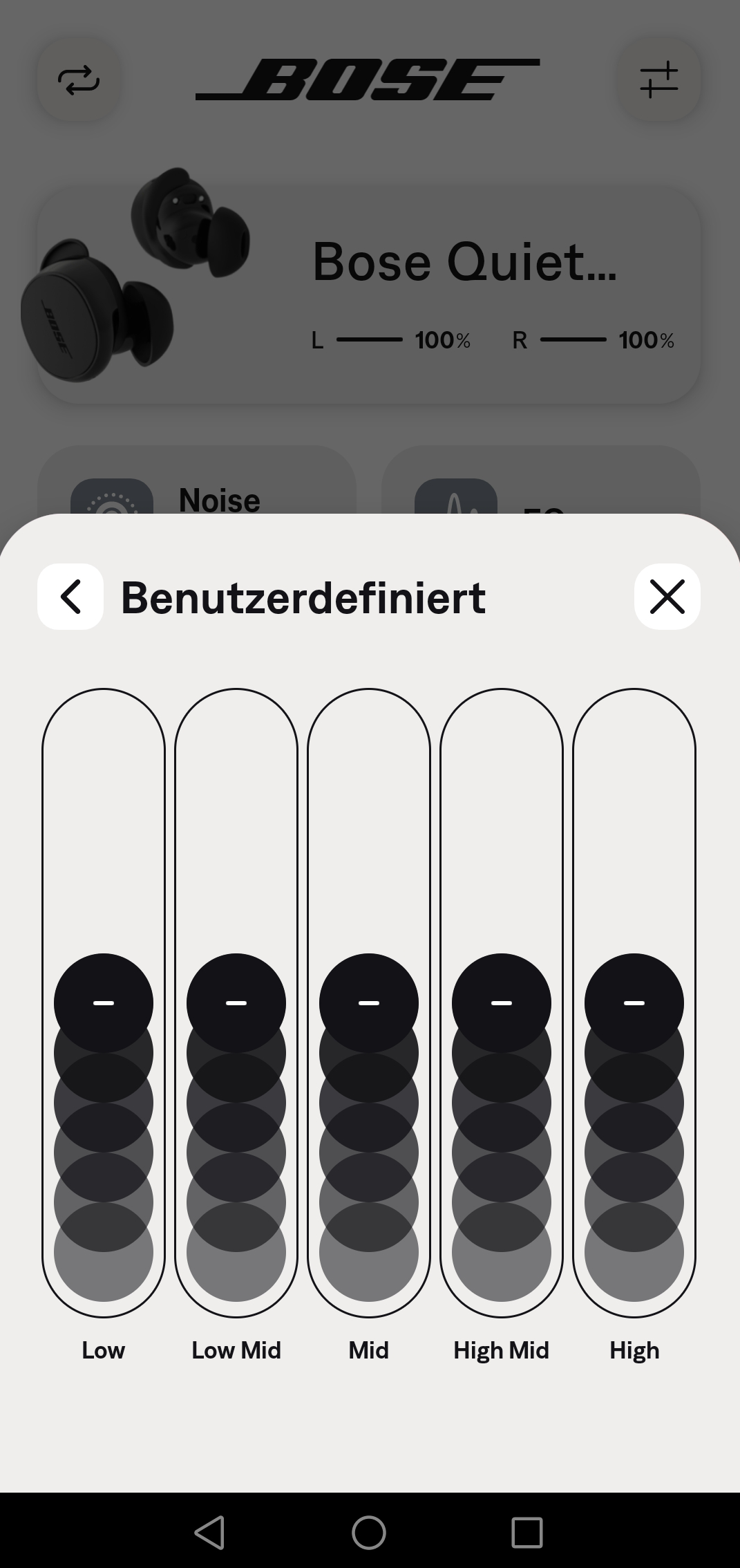 Und diese präsentiert sich im äußerst modernen und übersichtlichen Look. Bose verzichtet hier auf bunte Akzente, ausführliche Feature-Beschreibungen oder verschachtelte Unter-Menüs und präsentiert uns beinahe alle Funktionen auf einen Streich. Das gefällt auf den ersten Blick und gestaltet sich auch auf den zweiten sehr intuitiv.