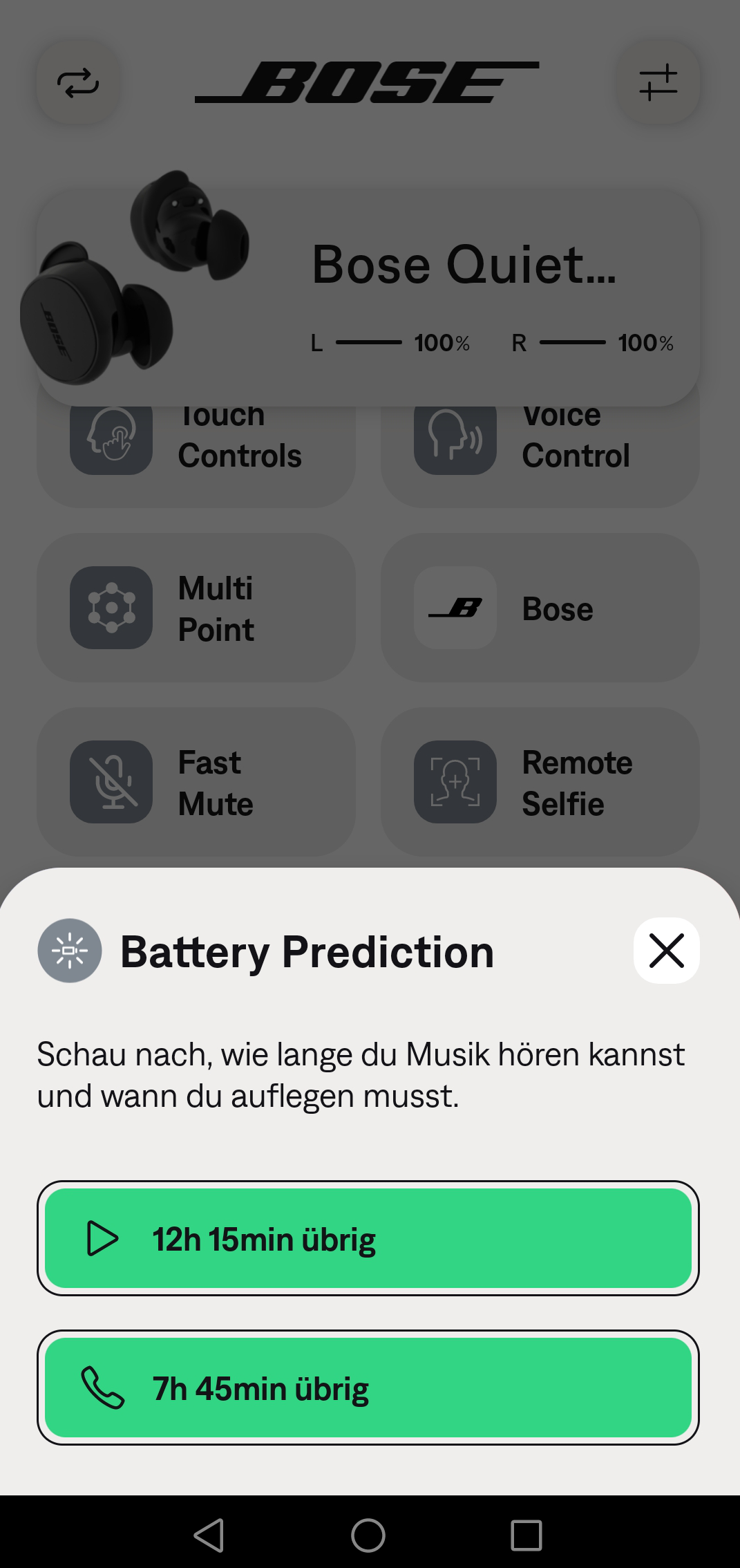 Mit dem Bluetooth-Standard 5.3, den die Bose QuietComfort Earbuds mitbringen, wäre rein theoretisch auch Auracast möglich, bisher hat Bose hier aber keine verbindlichen Ankündigungen gemacht. Dafür hat Bose aber mittlerweile auf der Gegenseite nachgerüstet, sprich: Multipoint ist an Bord, und hat auch ein eigenes Unter-Menü spendiert bekommen. Bei den Bluetooth-Codecs hingegen musst du dich mit SBC und AAC zufriedengeben, die Bose QuietComfort Ultra Earbuds bieten hier auch noch aptX Adaptive.