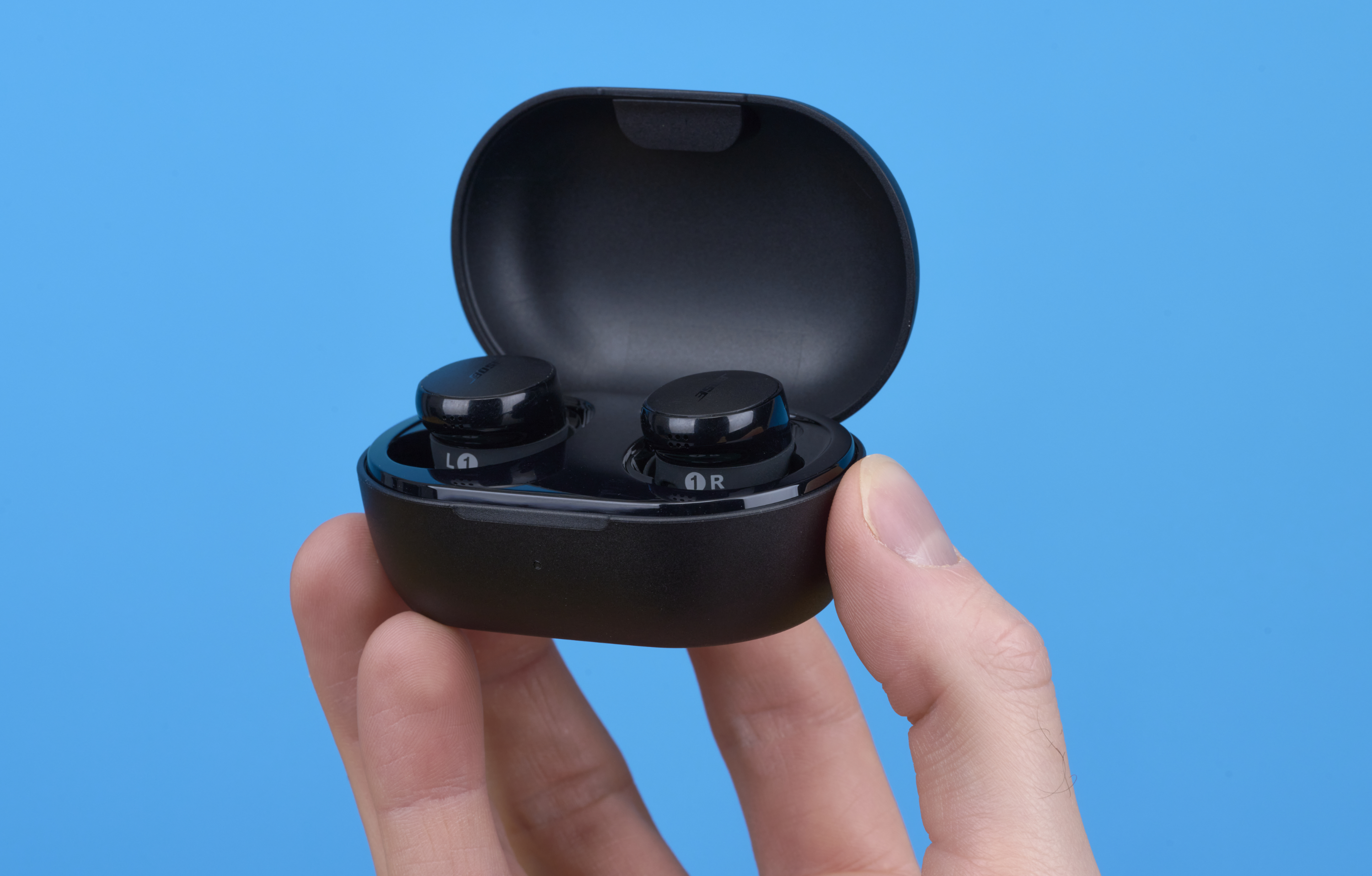 Die Bedienung ohne App erfolgt entweder über Touch-Befehle an den Earbuds – diese weisen ähnlich wie die Denon PerL Pro außen relativ große Touch-Flächen auf – oder per Stimmbefehl. Dabei sprichst du nicht etwa einen gewöhnlichen Sprachassistenten wie Google Assistant an, sondern die Kopfhörer selbst. Über „Hey Headphones“ und den entsprechenden Sprachbefehl steuerst du so Anrufe, die Wiedergabe oder sogar Noise Cancelling.