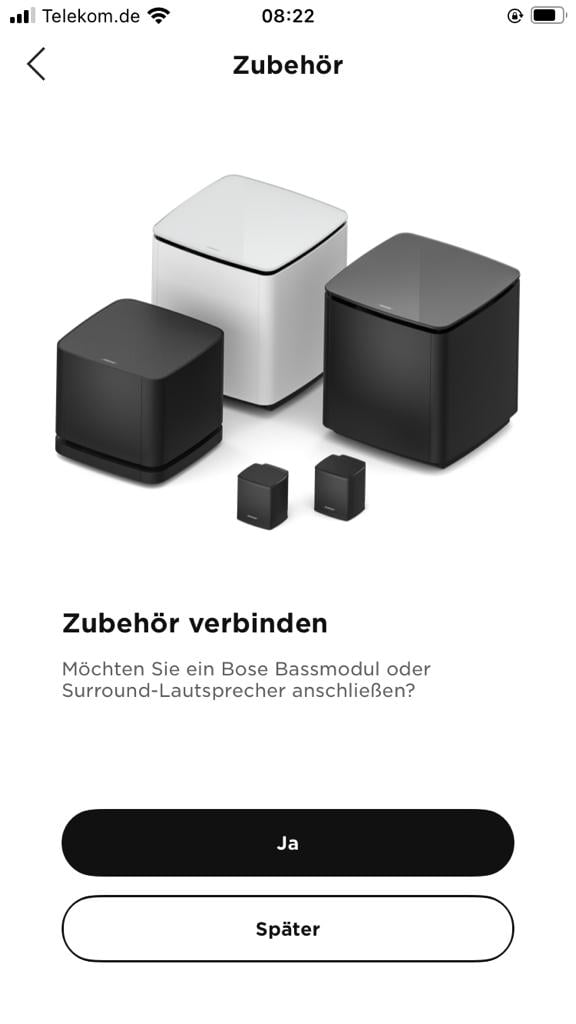 Für die Erstinstallation ist die Verwendung der passenden Bose Music App inklusive Anlegen eines Nutzer-Kontos Pflicht. Nur so kannst du den vollen Umfang an Funktionen nutzen. Wie der Hersteller dich durch den Prozess leitet, ist wiederum sehr vorbildlich gestaltet. Zunächst bindest du den Lautsprecher ins heimische WLAN ein, dann zeigt dir Bose, wie du die Soundbar am besten mit dem Fernseher verbindest und mögliche weitere Komponenten anschließt. Dann kann es losgehen. Display gibt es leider keines, alle Befehle werden lediglich mit dem Aufblinken einer roten oder weißen Status-LED sichtbar. Das kann die Bedienung bisweilen erschweren, wer Bose kennt dürfte darüber aber wenig überrascht sein.