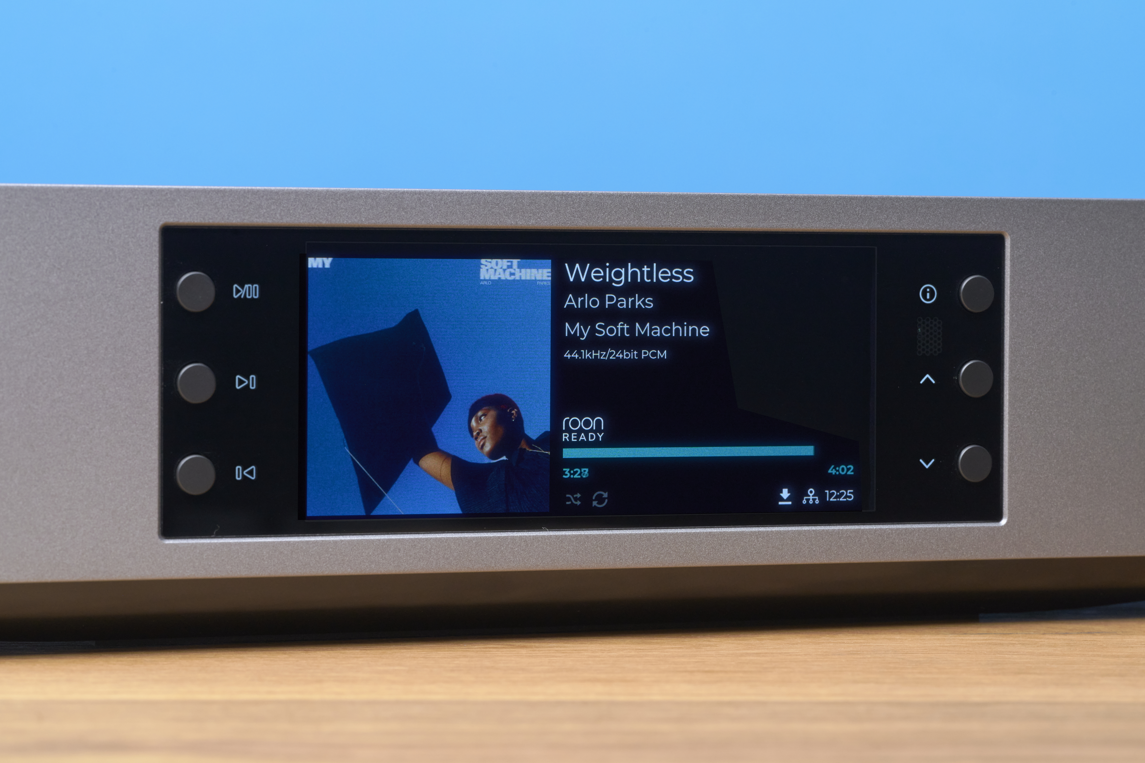 Richtig hochauflösend ist zu guter Letzt nicht nur der Ton, sondern auch das Bild geworden. Genauer gesagt: das Farbdisplay, das mit 1280 x 574 Pixeln wirklich gestochen scharfe Plattencover und Trackinfos anzeigen kann. App-Nutzer:innen haben mindestens genauso scharfe Bilder auch auf ihrem Smartphone.