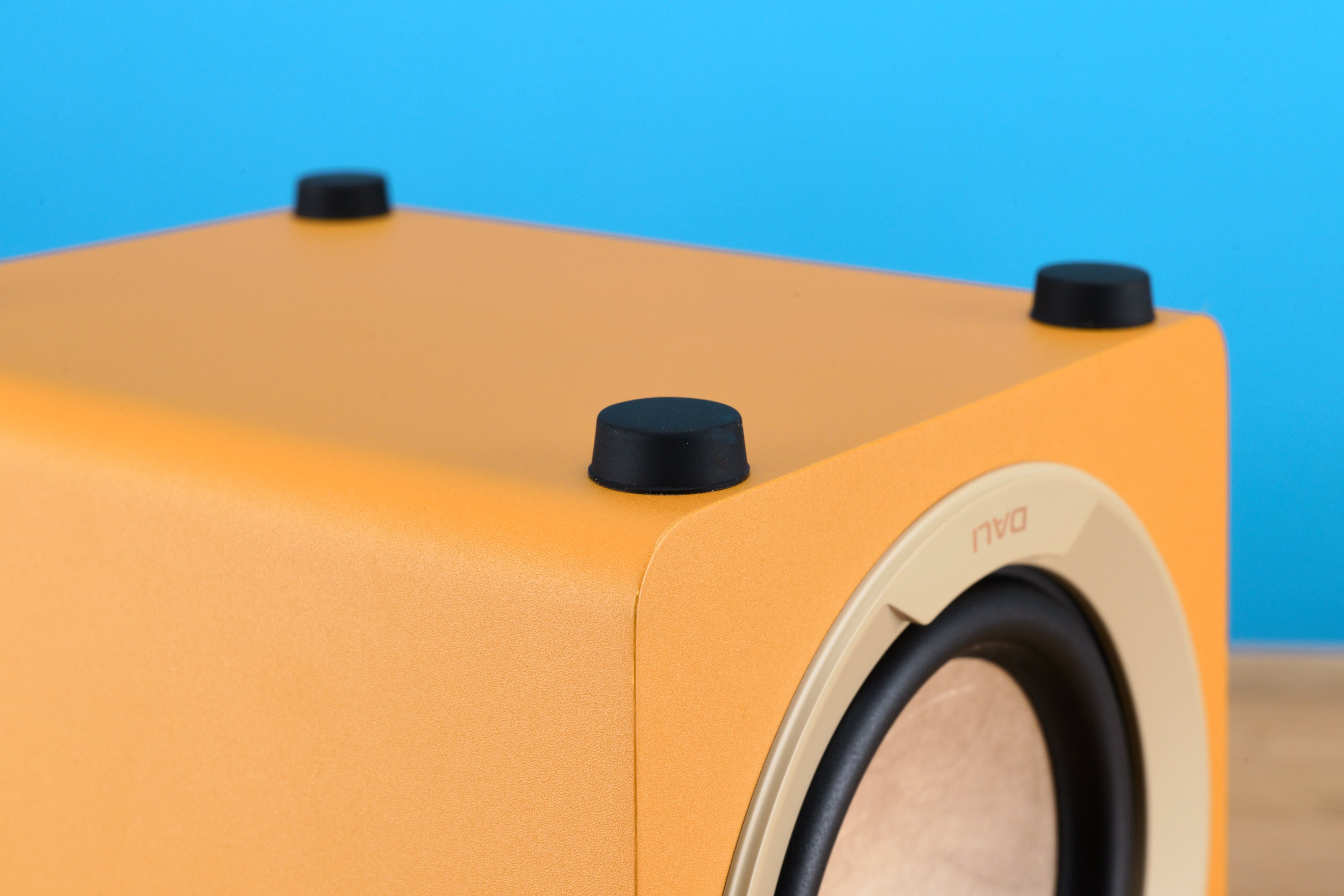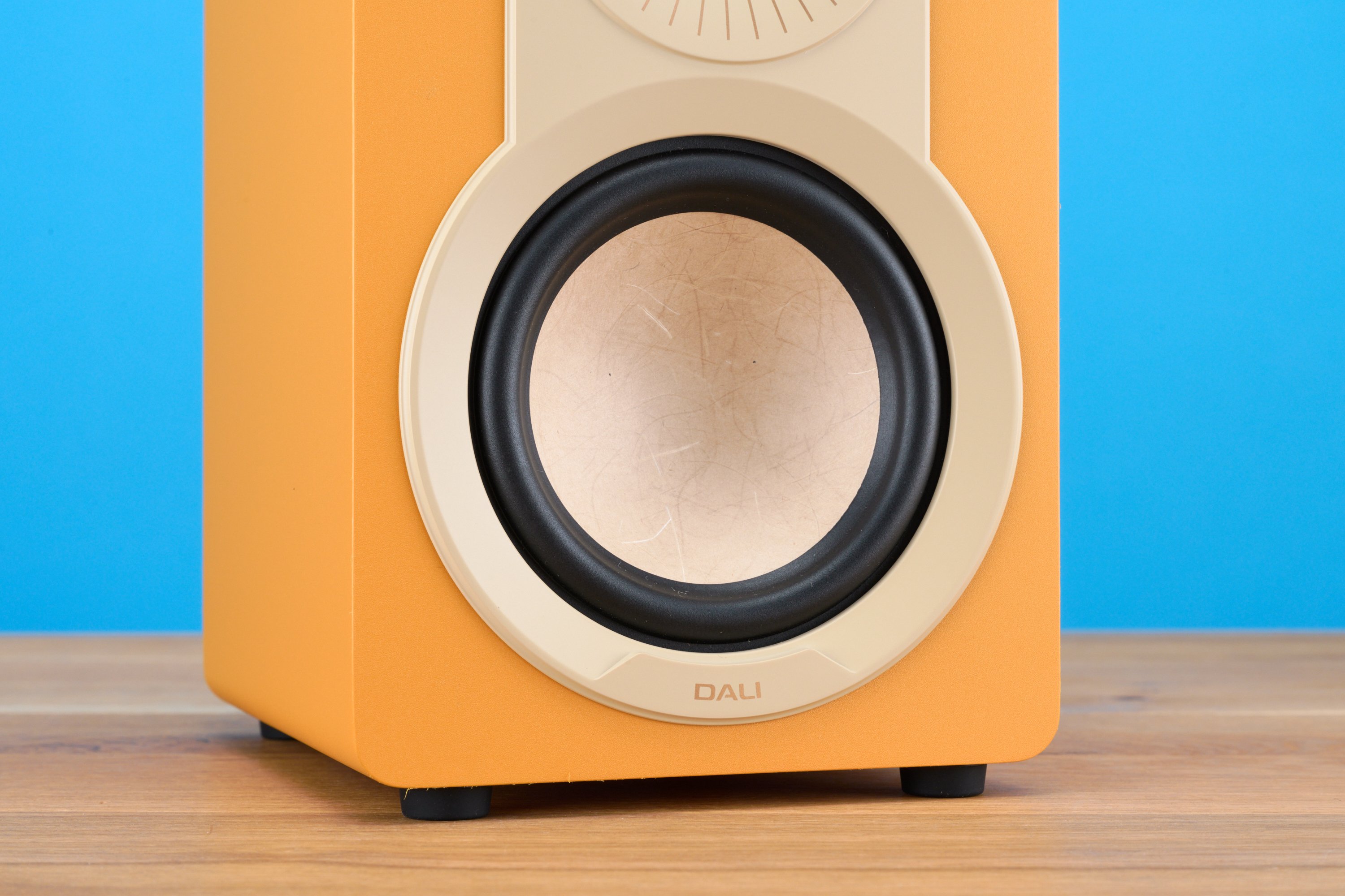 Das Gehäuse der Dali-Box besteht aus MDF. Auch die optisch vom Rest des Gehäuses abgehobene Frontplatte, in der beide Treiber sitzen, besteht aus den für Lautsprecher typischen Holzfaserplatten. Die abgerundeten Ecken und Kanten lassen die Box dabei etwas gemütlicher aussehen. Ebenso wie die optionalen, magnetischen Stoffabdeckungen.