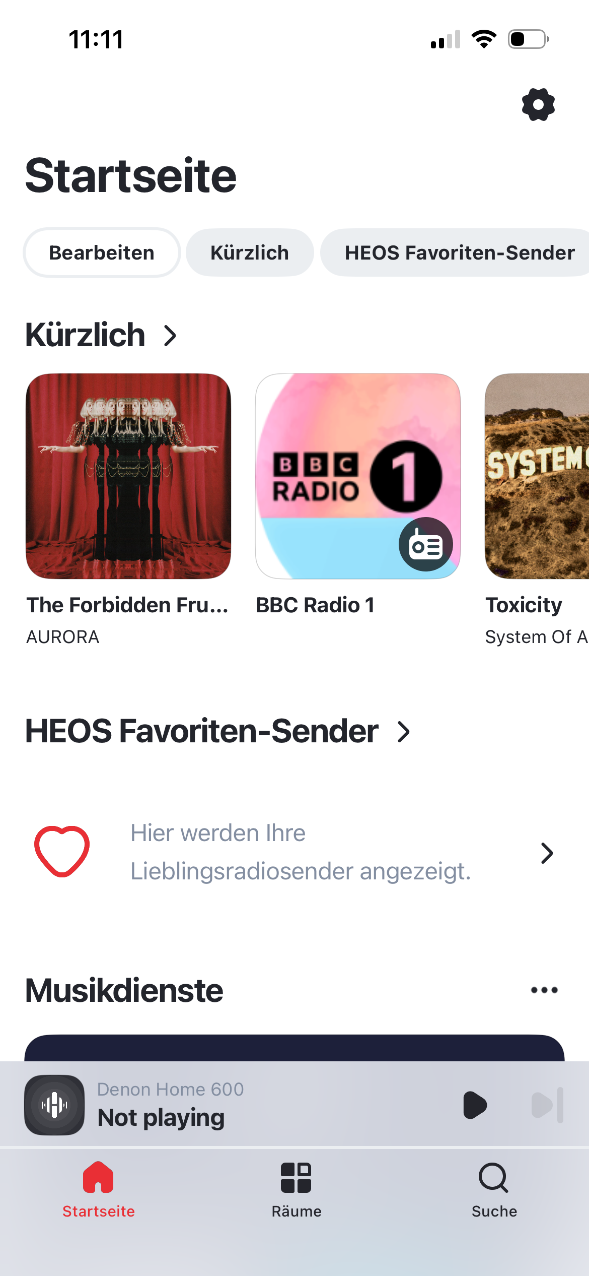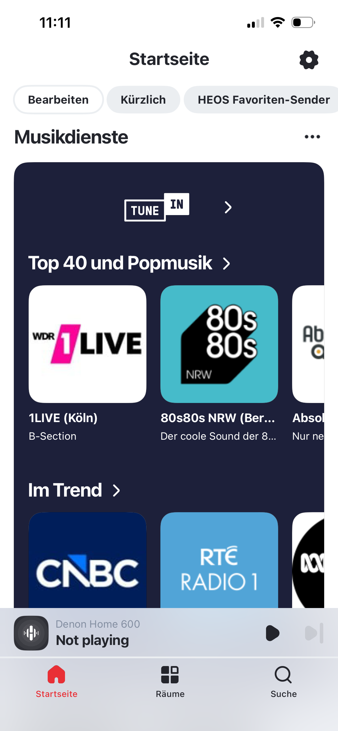 Auf der App-Startseite begrüßt dich Heos mit einer Auswahl personalisierter Musikinhalte, z. B. kürzlich abgespielte Alben oder Inhalte, die du manuell für den „Quick Select“ ausgewählt hast. Heos kann auf deine lokal gespeicherte Musik, Musik auf einem PC oder NAS im Netzwerk oder sogar die Kataloge der Musik-Streaming-Dienste, die du mit ihr verknüpfst, zugreifen. So kannst du z. B. über die Heos-App die Tidal-Bibliothek durchsuchen und dein Lieblingsalbum direkt dort starten. Die Auswahl der verfügbaren Dienste ist kleiner als z. B. bei Sonos, aber für die meisten Fälle sicher ausreichend. Du hast die Wahl zwischen Spotify, Tidal, Amazon Music, Deezer, Soundcloud und Qobuz.