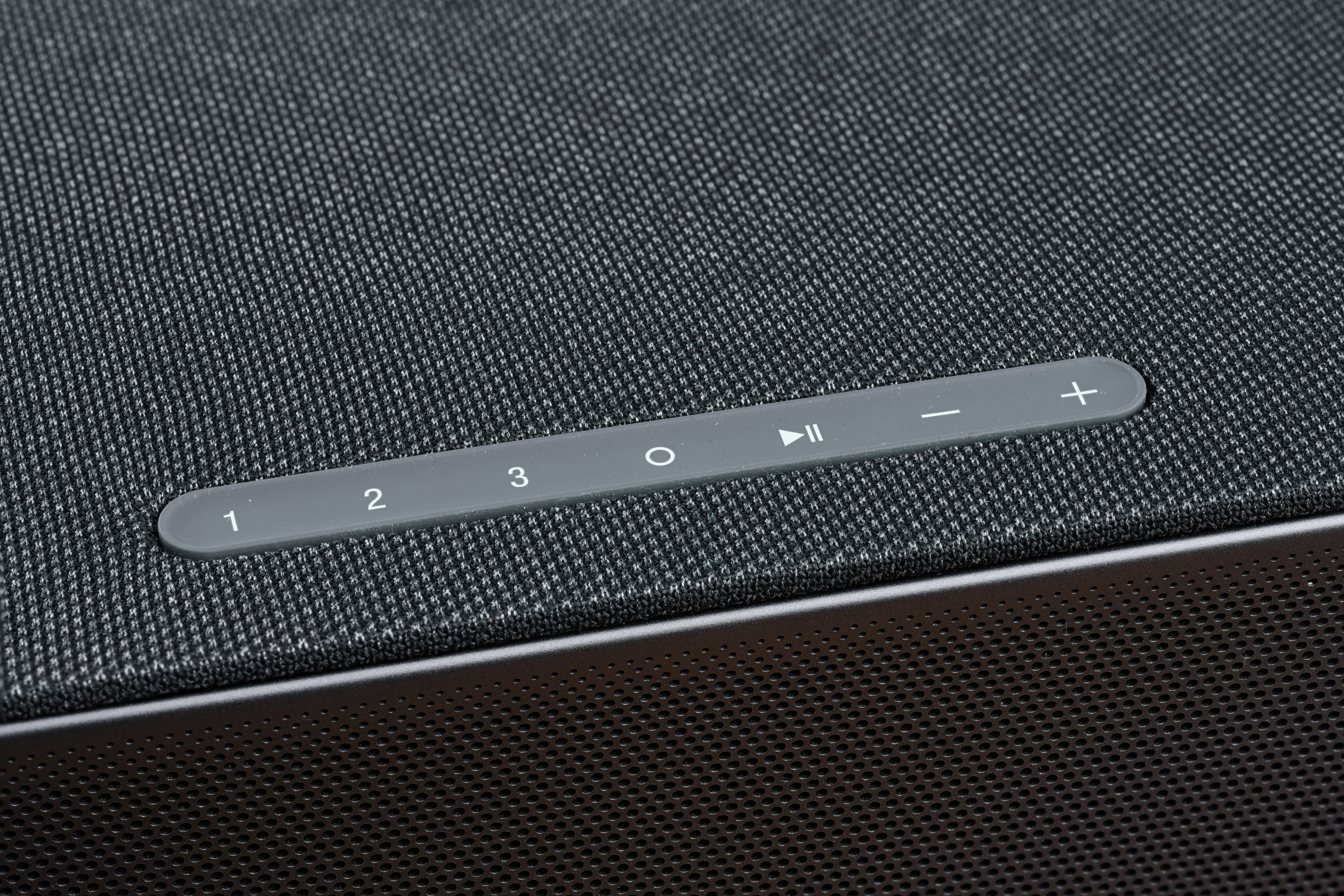 Möchtest du nicht zum Handy greifen, kannst du den Home 600 natürlich auch direkt am Gerät steuern. Die meisten Tasten sitzen gut erreichbar auf seiner Oberseite. Hier kannst du die Musik pausieren, Tracks überspringen oder die Lautstärke verändern. Links sitzen außerdem drei Preset-Tasten. Sie kannst du mit unterschiedlichen Wiedergabequellen belegen.