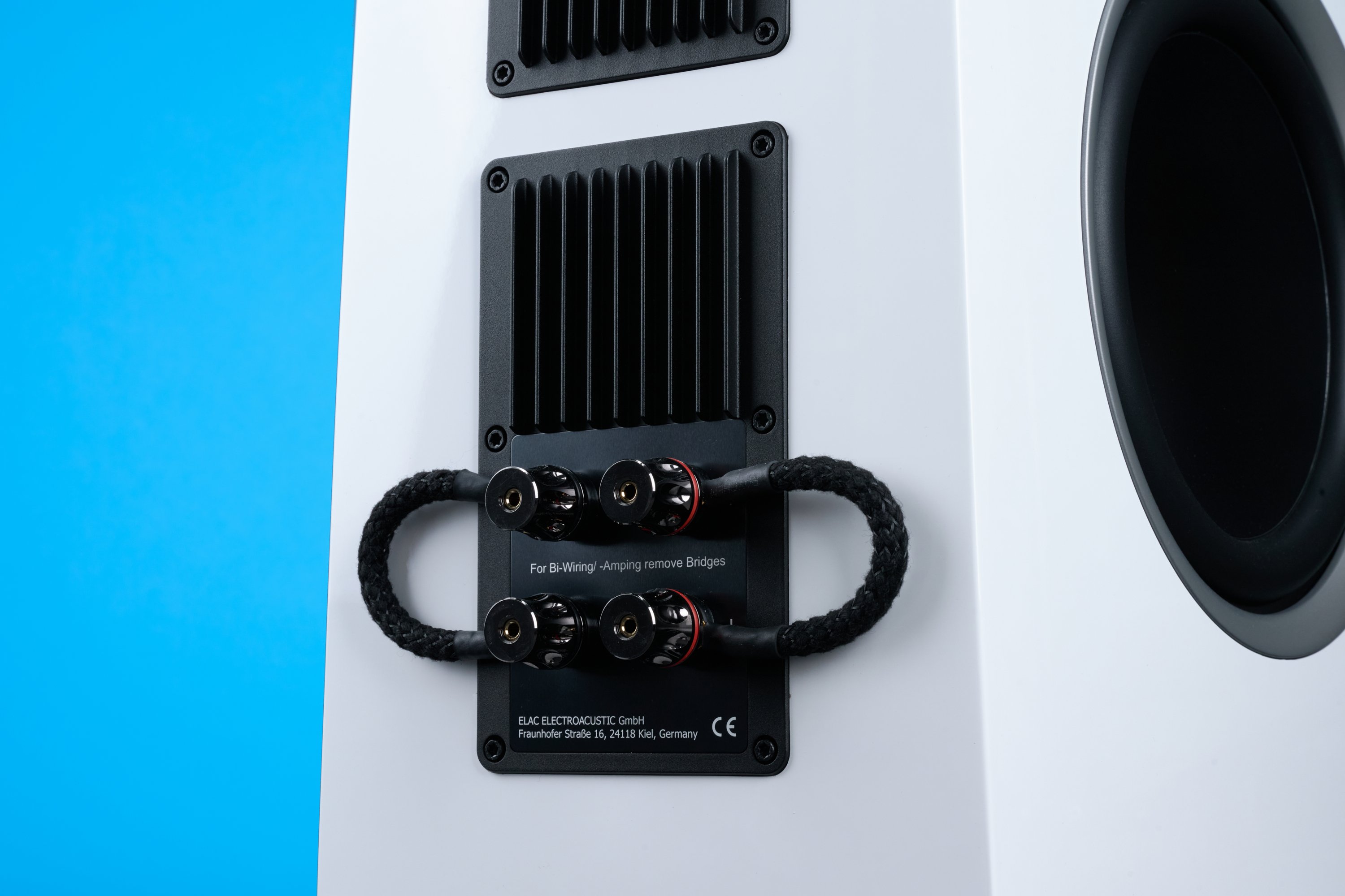 An ihrem Bestimmungsort kannst du die beruhigend schweren Spikes in die Sockelplatte schrauben. Natürlich liegen für empfindliche Böden auch bekorkte Spiketeller bei. Für deinen Verstärker bietet jede Concentro M 807 ein mit hochwertigen Kabeln bebrücktes Bi-Wiring-Terminal. Entfernst du die Brücken, kannst du die hohen und niedrigen Frequenzen separat anspielen.