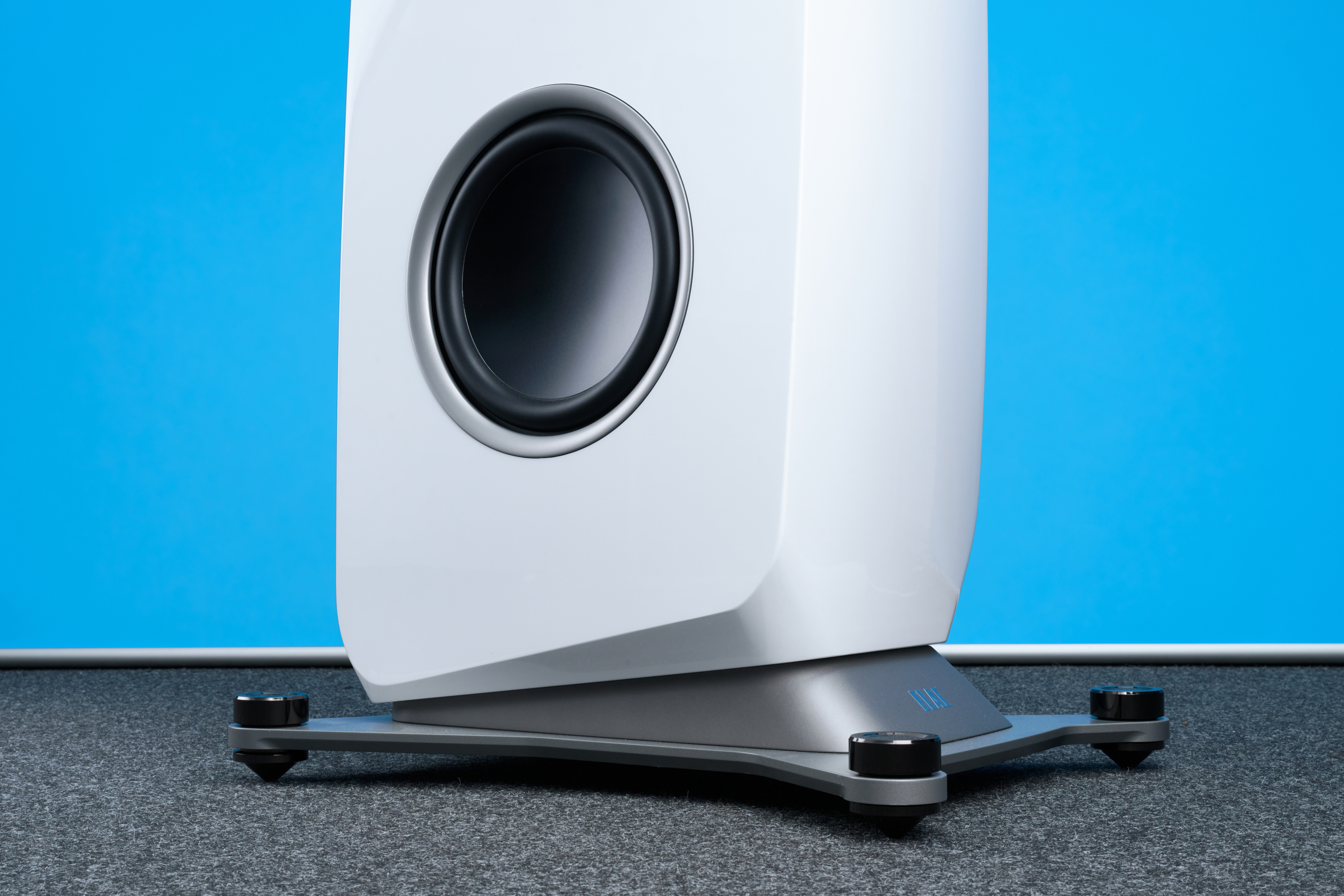 An den beiden Seitenwänden arbeitet jeweils ein Tieftöner mit 250 Millimeter Durchmesser. Diese arbeiten entsprechend im Push-Push-Betrieb, was Resonanzen größtenteils verhindert, die andernfalls durch die Bewegung der Treiber im Gehäuse für Unruhe sorgen würden. Unterstützt werden sie von einem großen Bassreflexrohr, das unsichtbar im Fuß der Box endet. So weit nichts, das wir noch nie gesehen hätten. Auch andere High-End-Lautsprecher, etwa die KEF Blade One Meta und natürlich die Vorgängerin unseres Testpärchens, die Elac Concentro 2.0, nutzen einen ähnlichen Aufbau. Warum auch das Rad neu erfinden, wenn sich ein Ansatz bewährt hat?