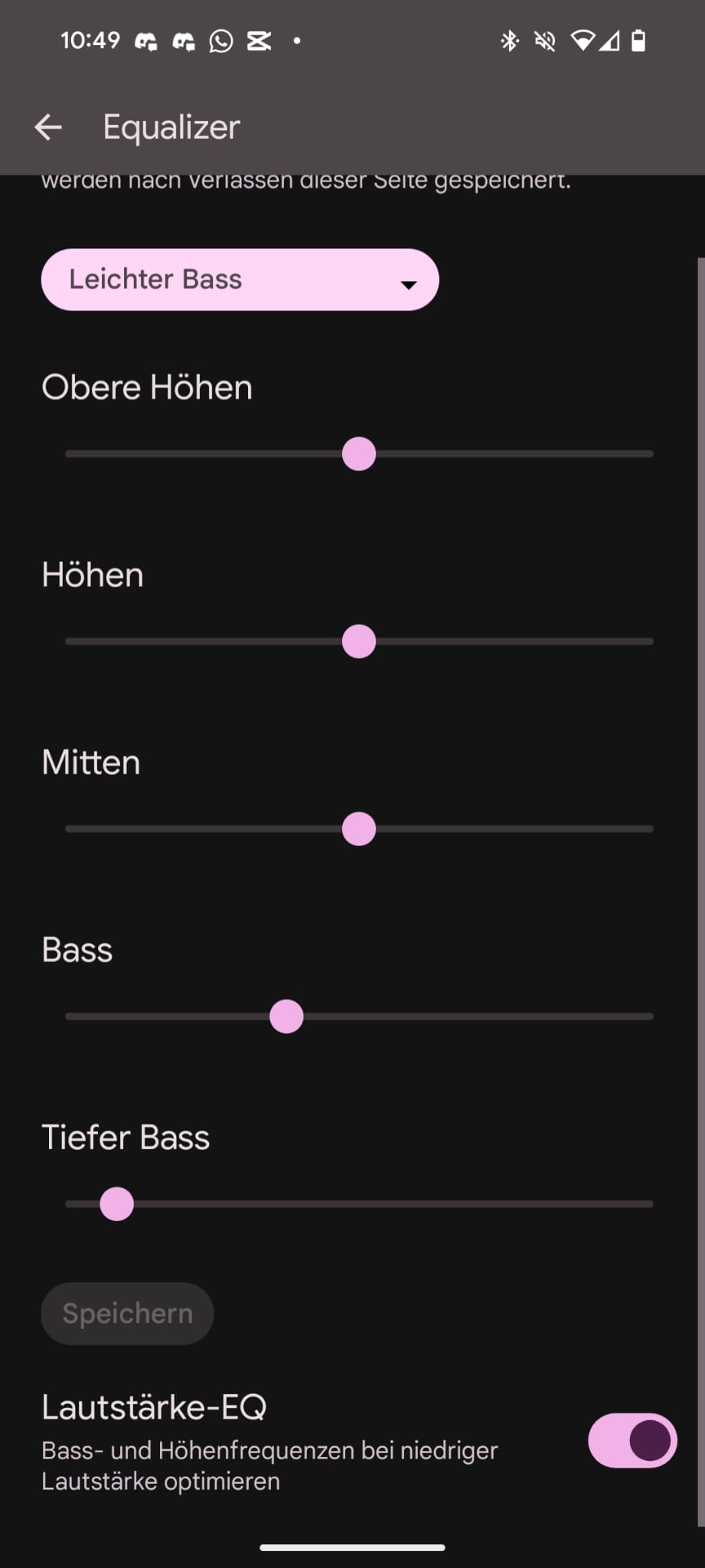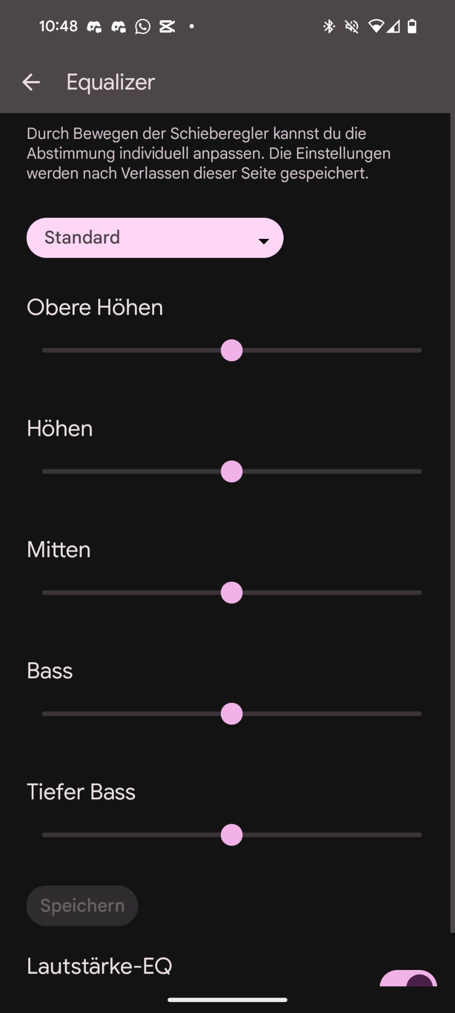 Eigene Presets kannst du hier nicht anlegen. Bei den meisten Nutzer:innen wird der Griff zum Smartphone aber auch in den seltensten Fällen zum Equalizer führen, dafür klingen die Pixel Buds 2a schon ab Werk zu harmonisch. Hier geht es wirklich eher um einmaliges Feintuning. Ein automatischer Equalizer übernimmt bei Bedarf außerdem noch die Anpassung von Tiefen und Höhen an die gewählte Wiedergabelautstärke, um Verzerrungen und Ungenauigkeiten zu vermeiden.