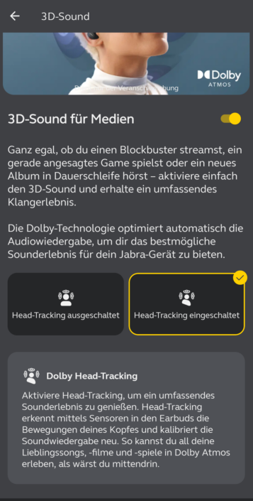 Das Experiment glückt und wir erfreuen uns am schaurig schönen Soundtrack samt Headtracking. Hier gilt wirklich: Plug and Play. Bei der Funktion ist nämlich keinerlei weitere Einrichtung notwendig, ehe das Signal bei den Earbuds ankommt. Langsam verstehen wir, warum Jabra mit den Elite 10 Gen 2 trotz der ungewissen Zukunft doch noch auf den Markt drängen wollte.