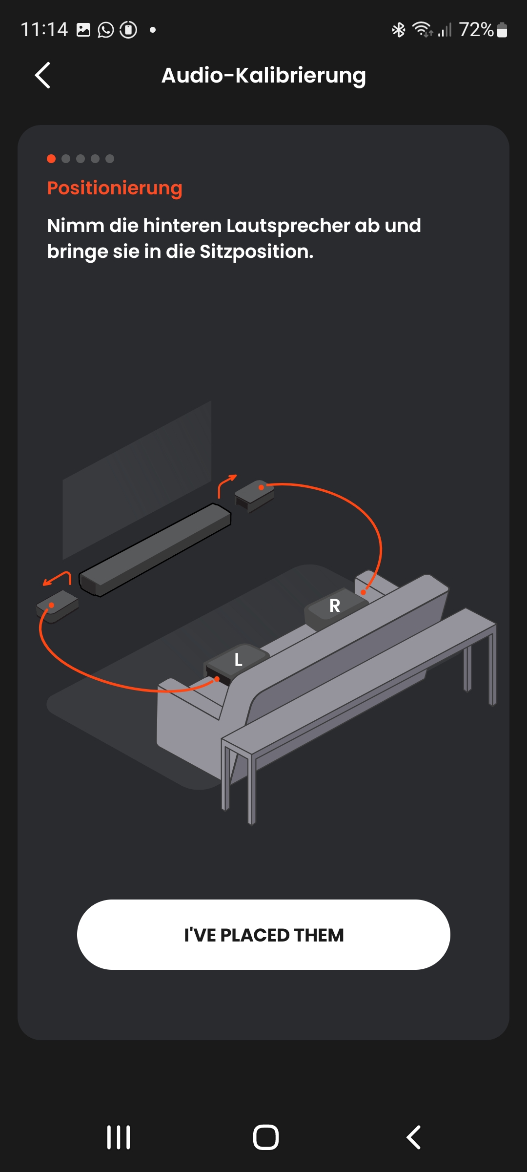 Einen Vorgeschmack auf das Surround-Potenzial bekommst du übrigens schon über die vorinstallierten Klanglandschaften wie „Wald“ oder „Regen“. Gerade für den Einstieg ist das ziemlich beeindruckend – erstaunlich, was aus einer vergleichsweise schlanken Hauptbar und zwei kompakten Rears an 3D-Sound herauszuholen ist.
